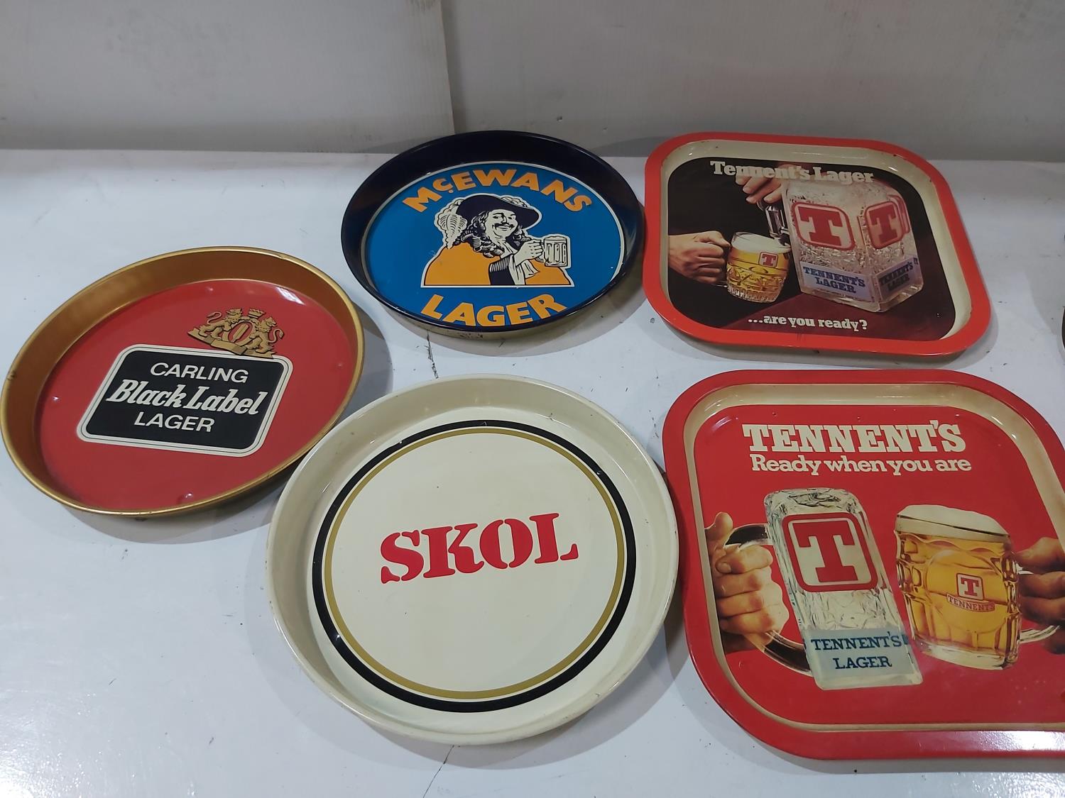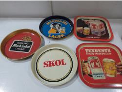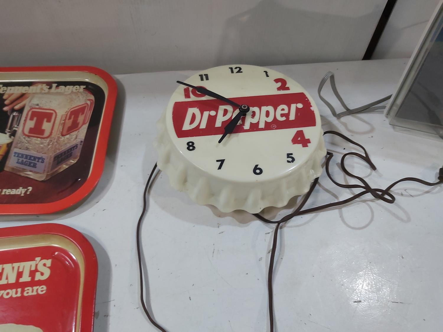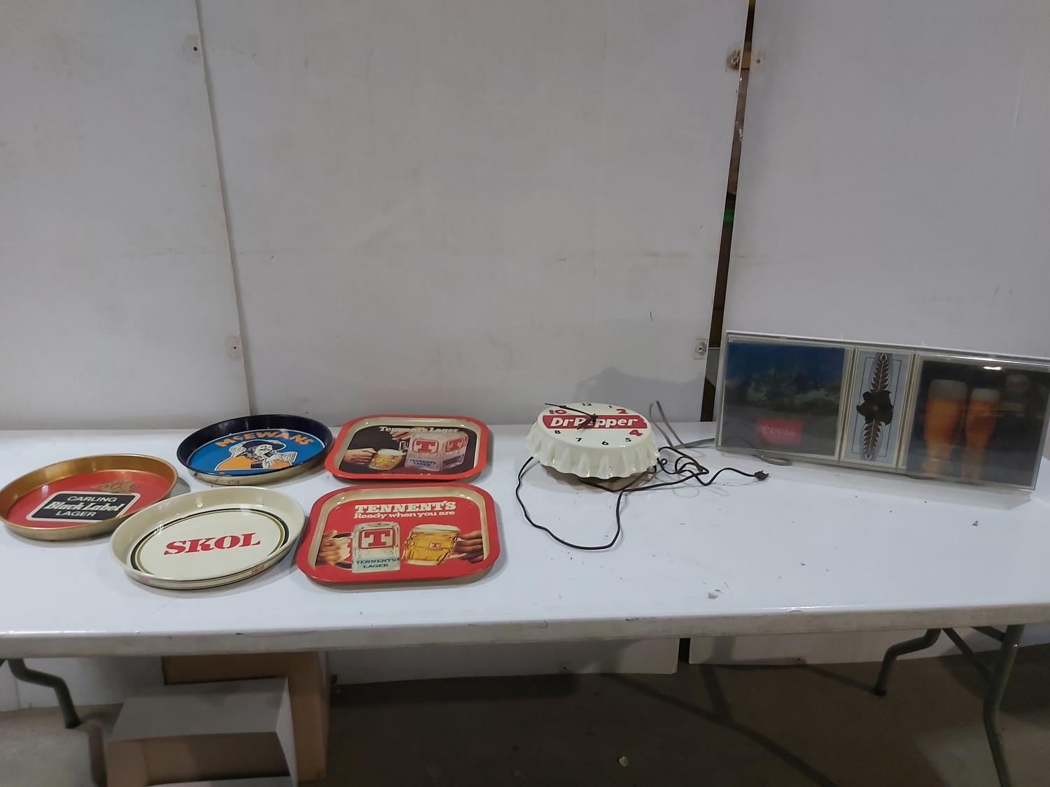1236 (5) Vintage Metal Trays, Dr. Pepper Light Up Sign and Coors Light Sign