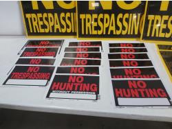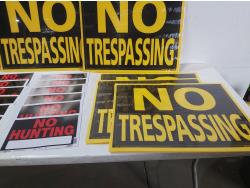 1221 (6) No Trespassing Signs, (4) Small No Trespassing Signs and (12) No Hunting Signs (Unused)