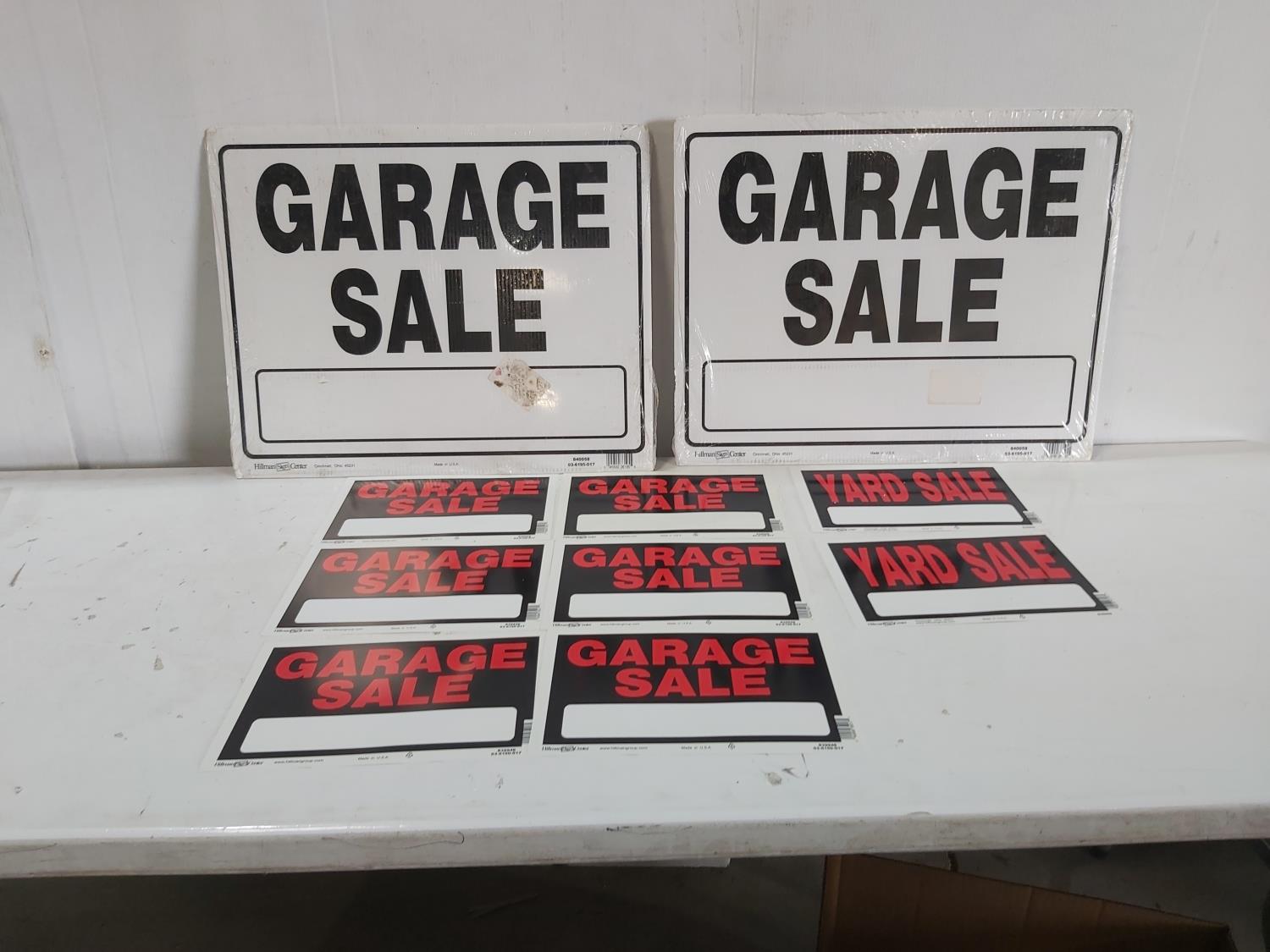 1222 (8) Garage Sale Signs and (2) Yard Sale Signs (Unused)