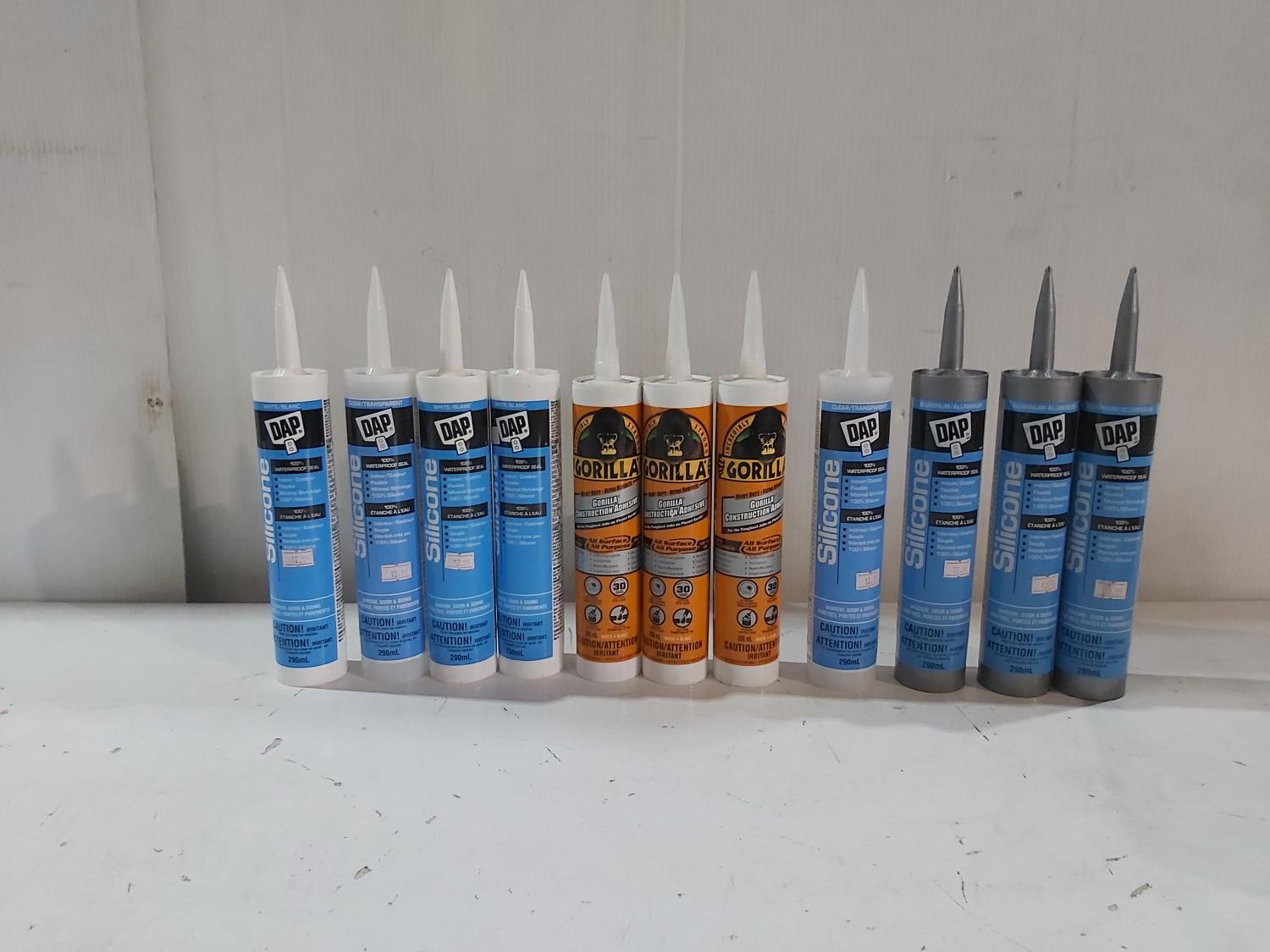 1102 (8) Tubes of Dap Silicone and (3) Tubes of Gorilla Construction Adhesive