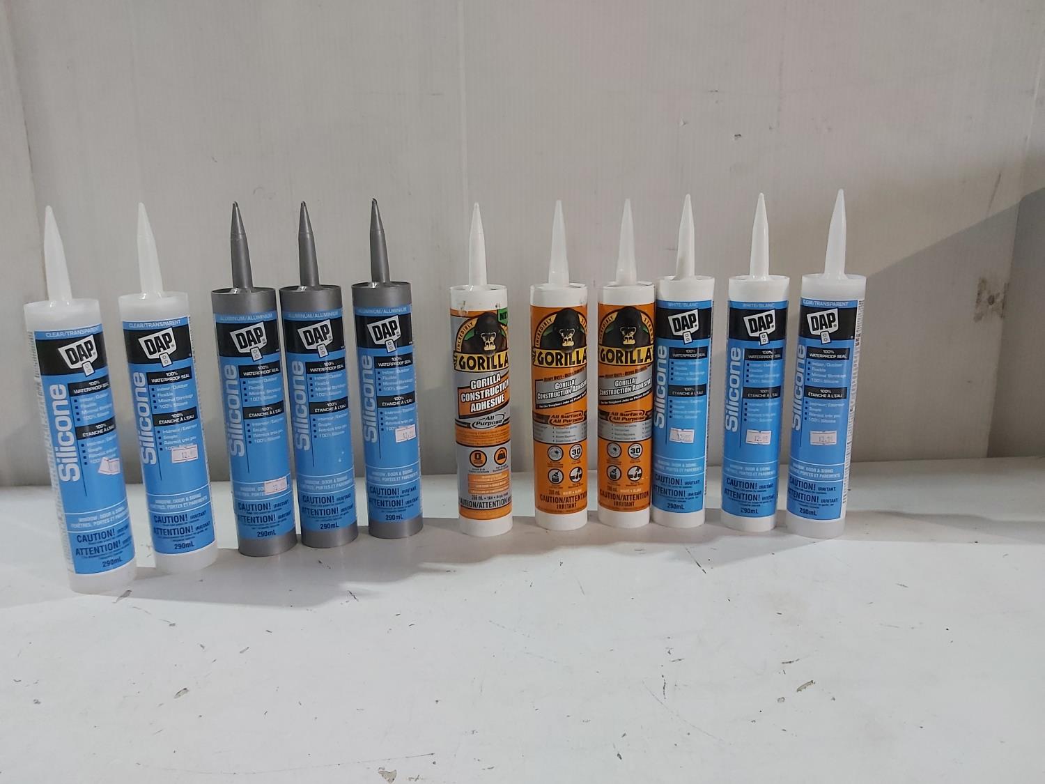 1101 (8) Tubes of Dap Silicone and (3) Tubes of Gorilla Construction Adhesive