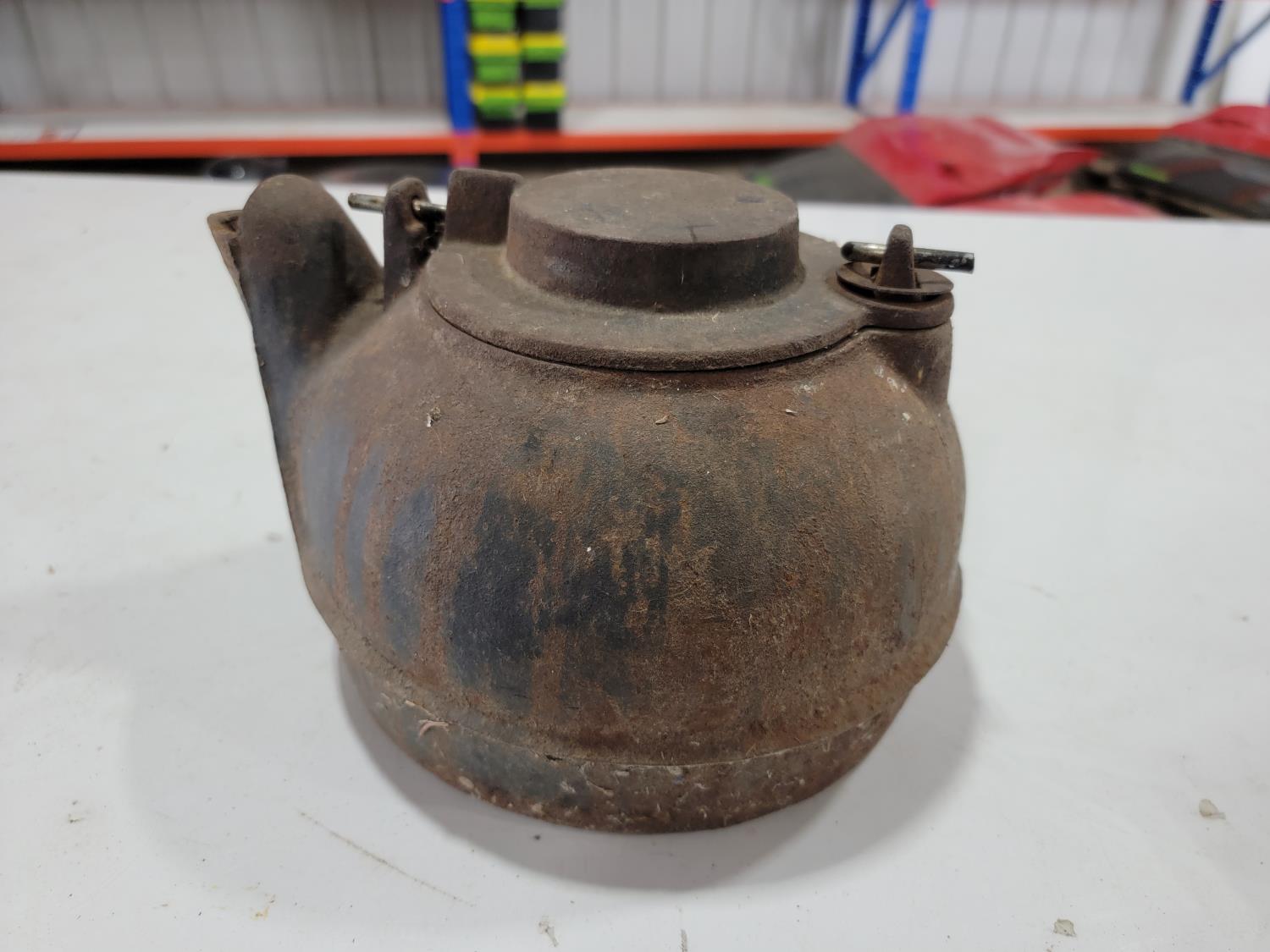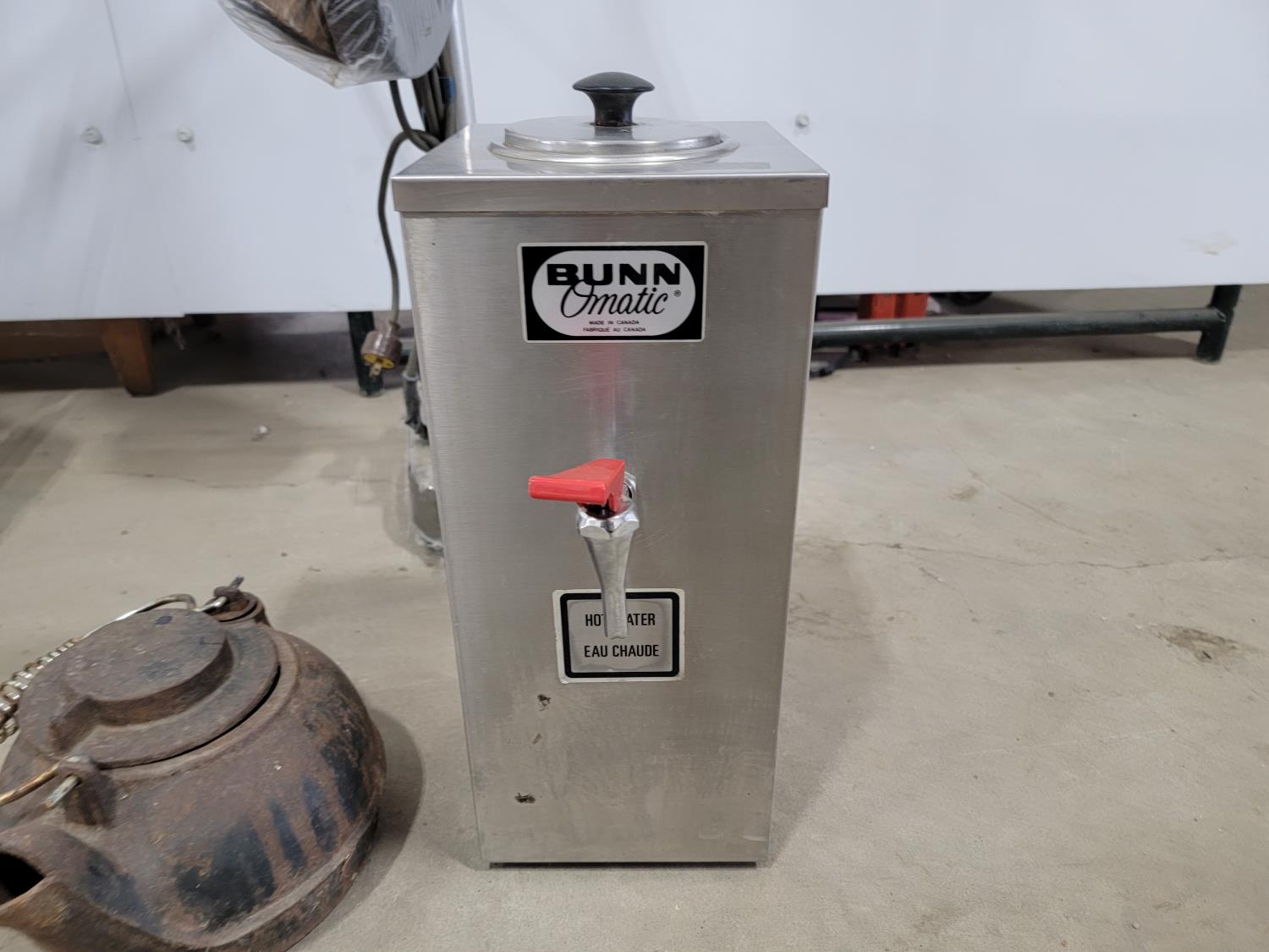 1641 Antique Cast-Iron Kettle and Bunn Commercial Hot Water Dispenser
