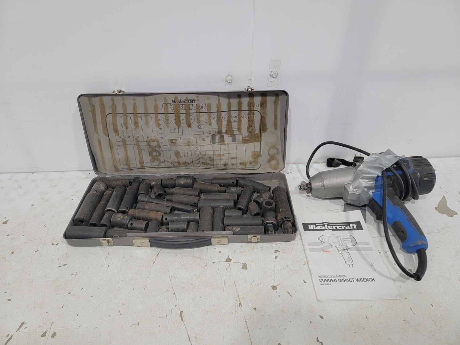 1136 Mastercraft 120V Impact Wrench and Qty of Assorted Impact Sockets