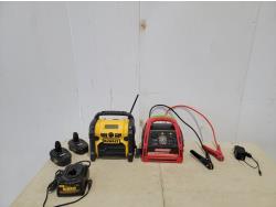 1443 Motomaster 1200 Peak Amp Booster Pack, Dewalt 18V Radio with (3) Batteries and Charger
