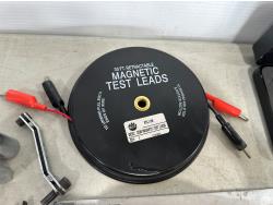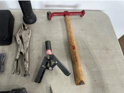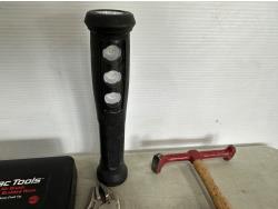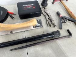magnetic retractable leads, air brush gun, expandable hood prop, pry bar, hammer, sanding block, rechargeable light, locking pliers