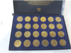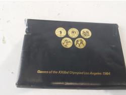 Set of 24 commemorative tokens for 1984 Los Angeles olympics, (15) medallions for 1984 Canadian visit of Pope John Paul II, (42) commemorative badges for 1st police and fire games San Jose California 1985