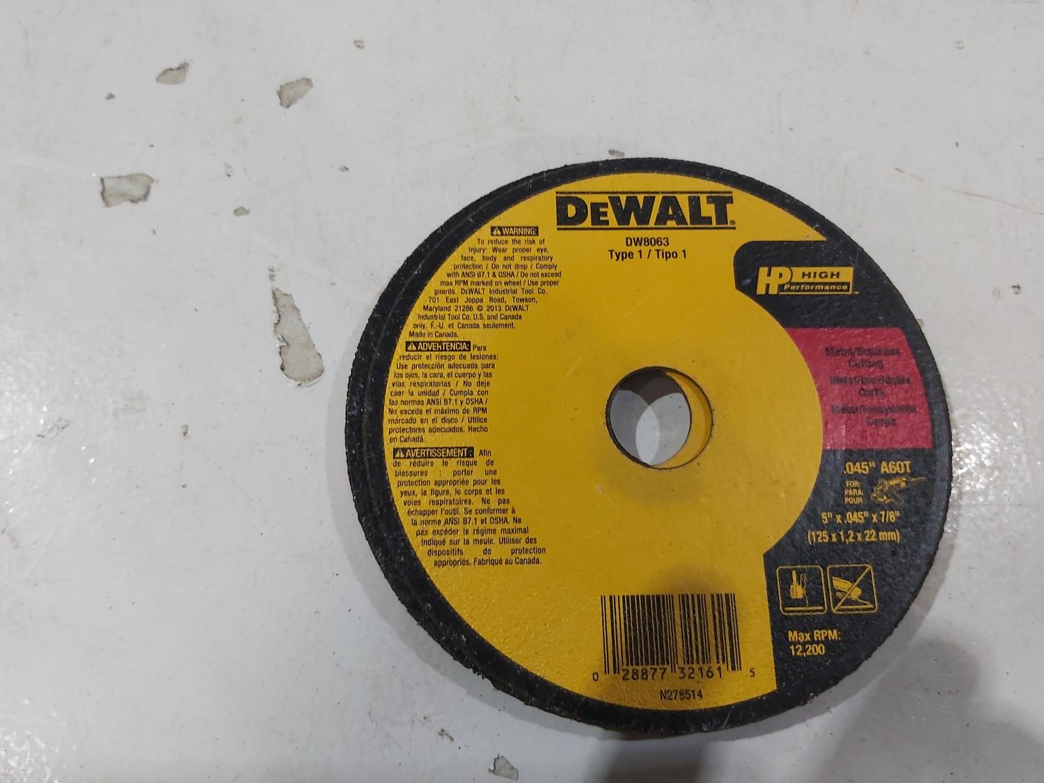 1085 Qty of Dewalt Cut-Off Discs and 5 Inch Disc Pad