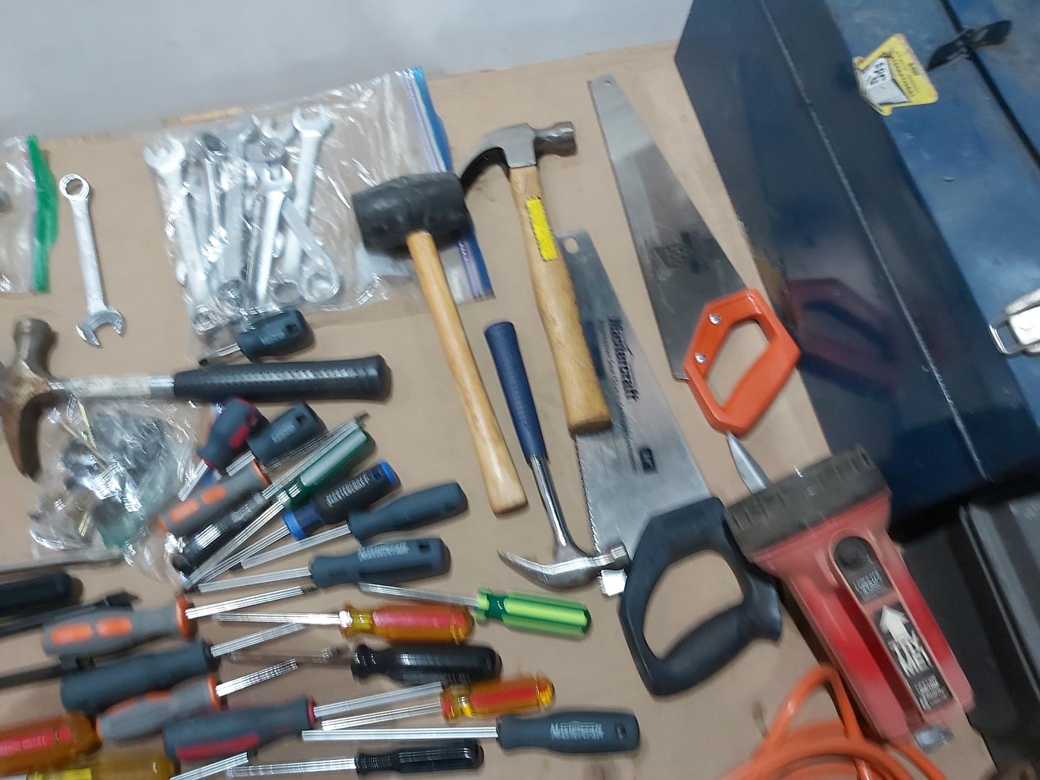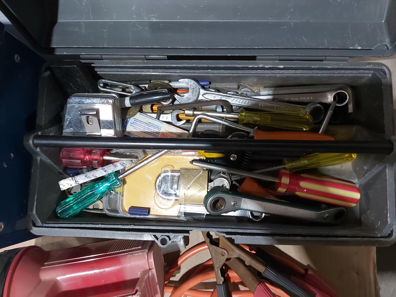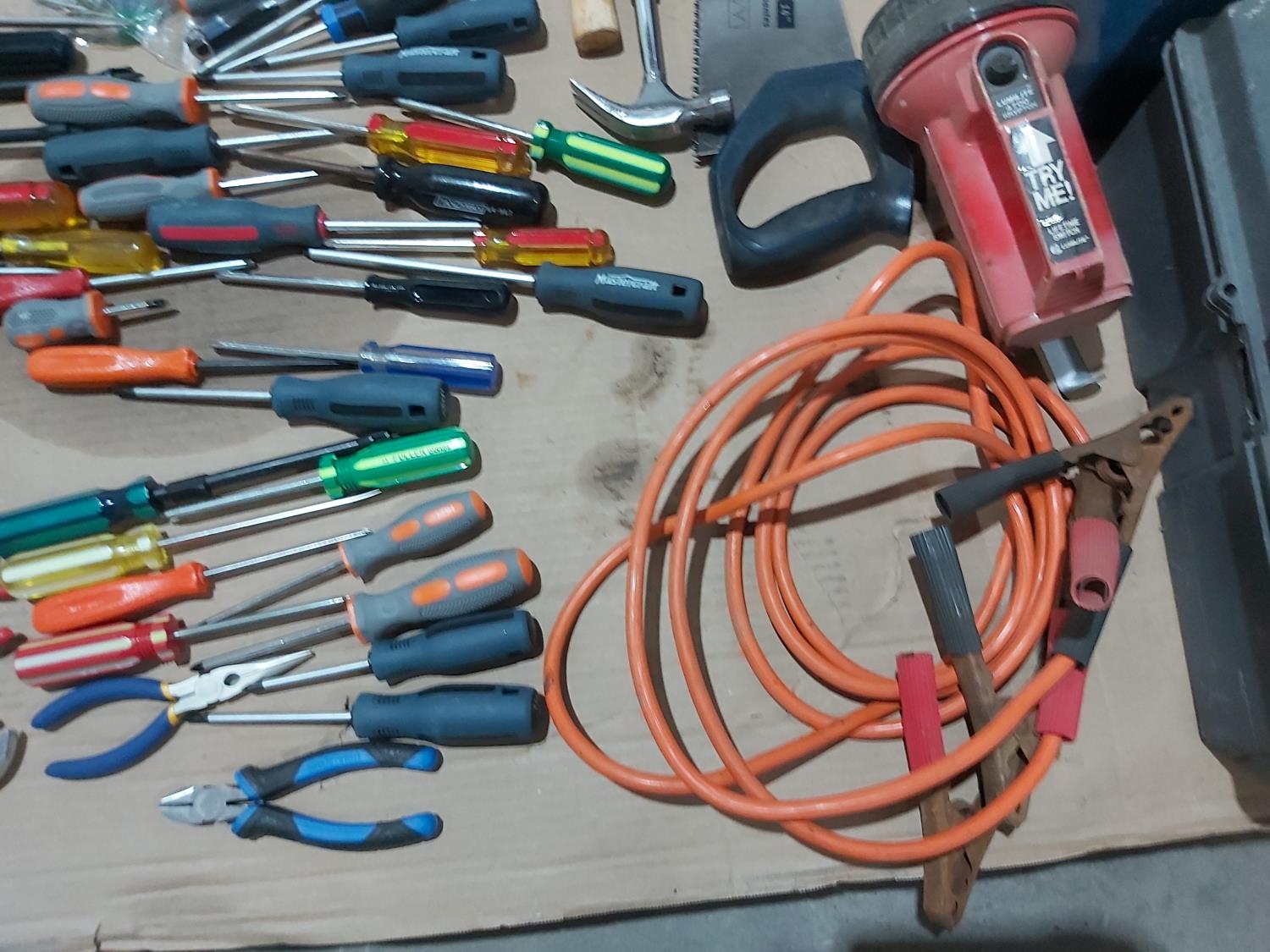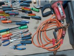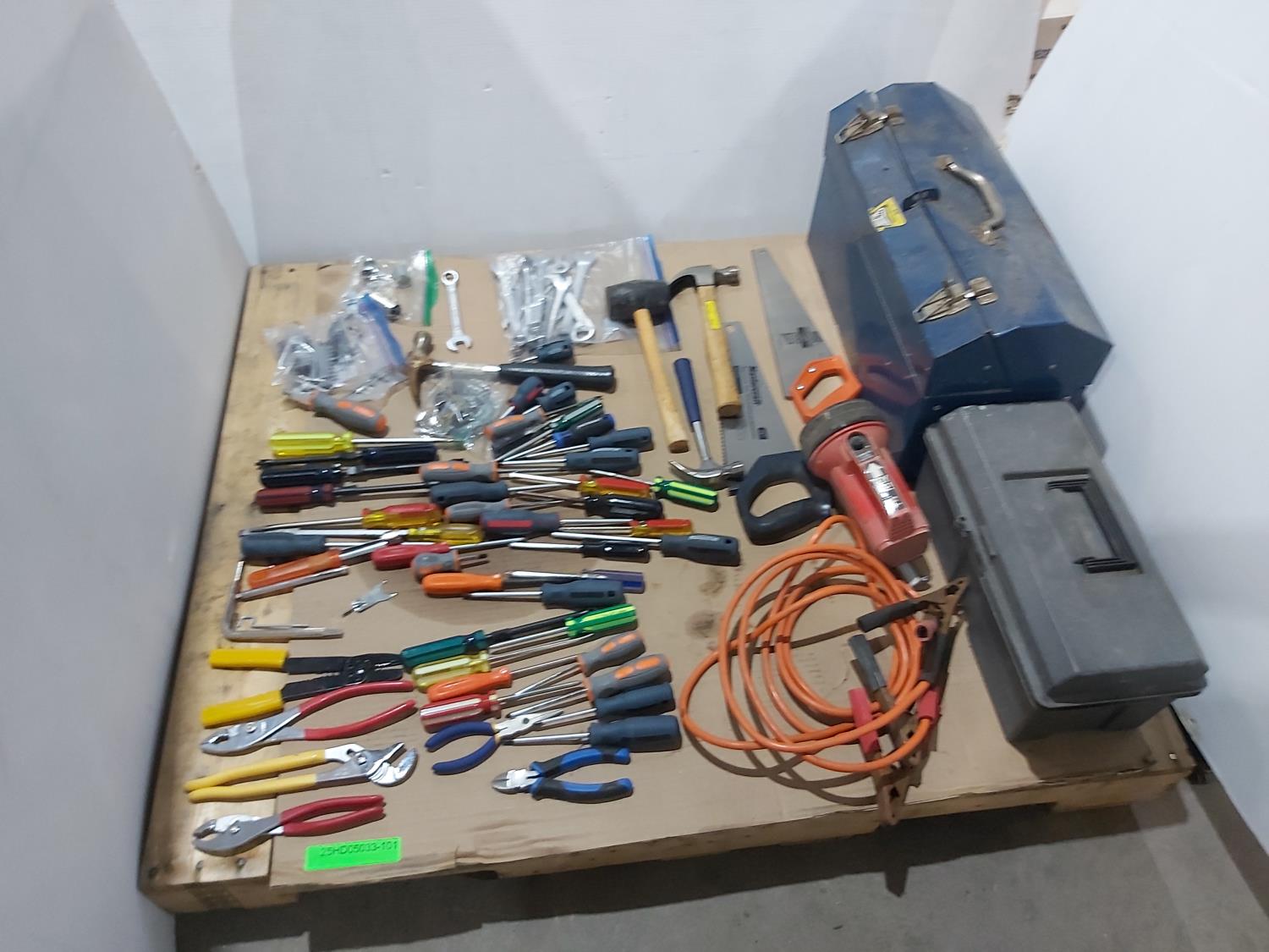 1293 Qty of Hand Tools, (2) Tool Boxes and Booster Cables