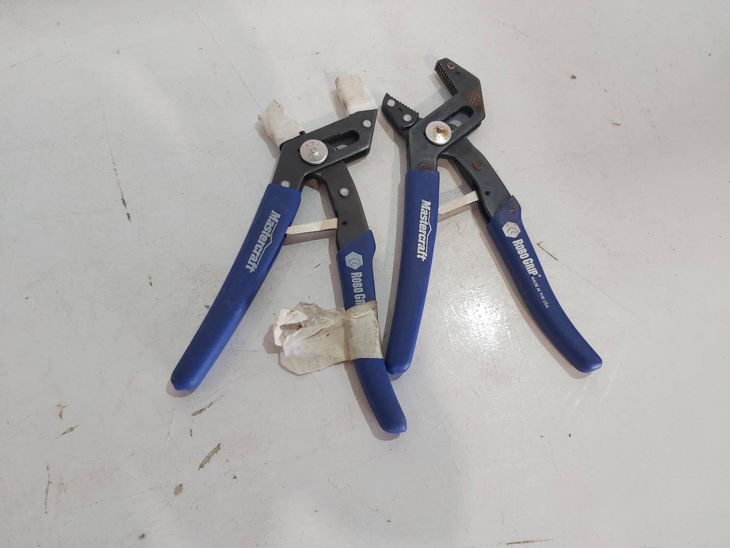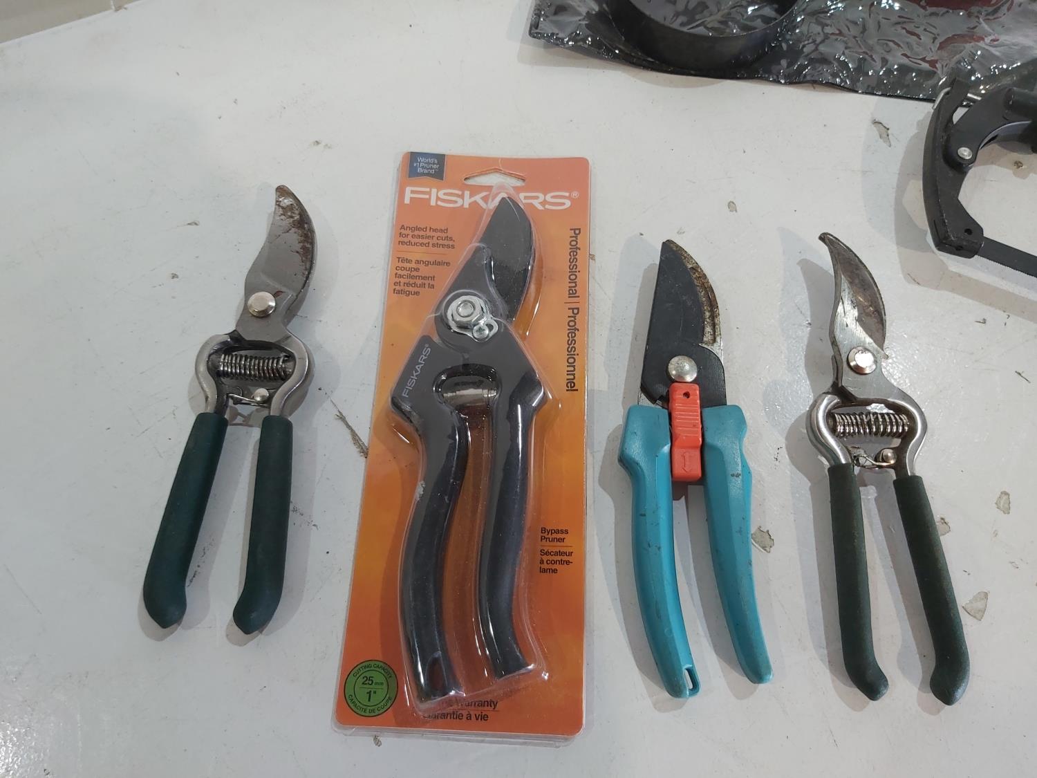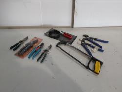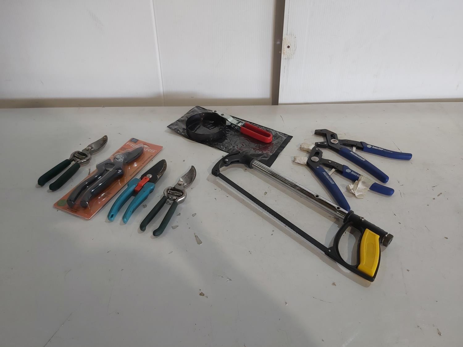 (4) garden shears, Mastercraft Robo-Grip pliers, hacksaw, oil filter wrench