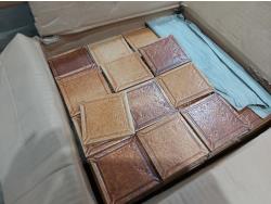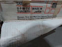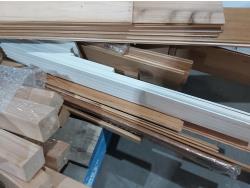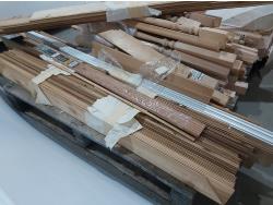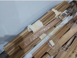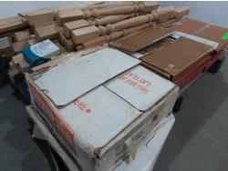 Tongue and groove lumber, stair rails, box of ceramic tile, (4) boxes of mirror tile with gold pattern, (5) boxes of mirror tile with silver color pattern
