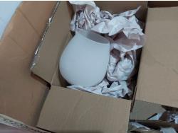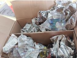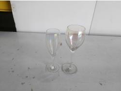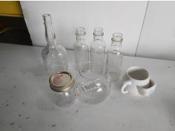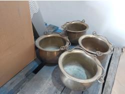 Glass lamp fixtures, drinking glasses, (4) brass pots, faucet and fittings