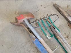 Axe, splitting maul, rake, pitch fork, pickaxe