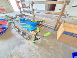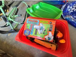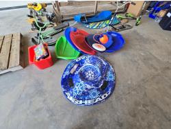 Snow saucers, two ski snow board, GT racer, small toys, miscellaneous other items