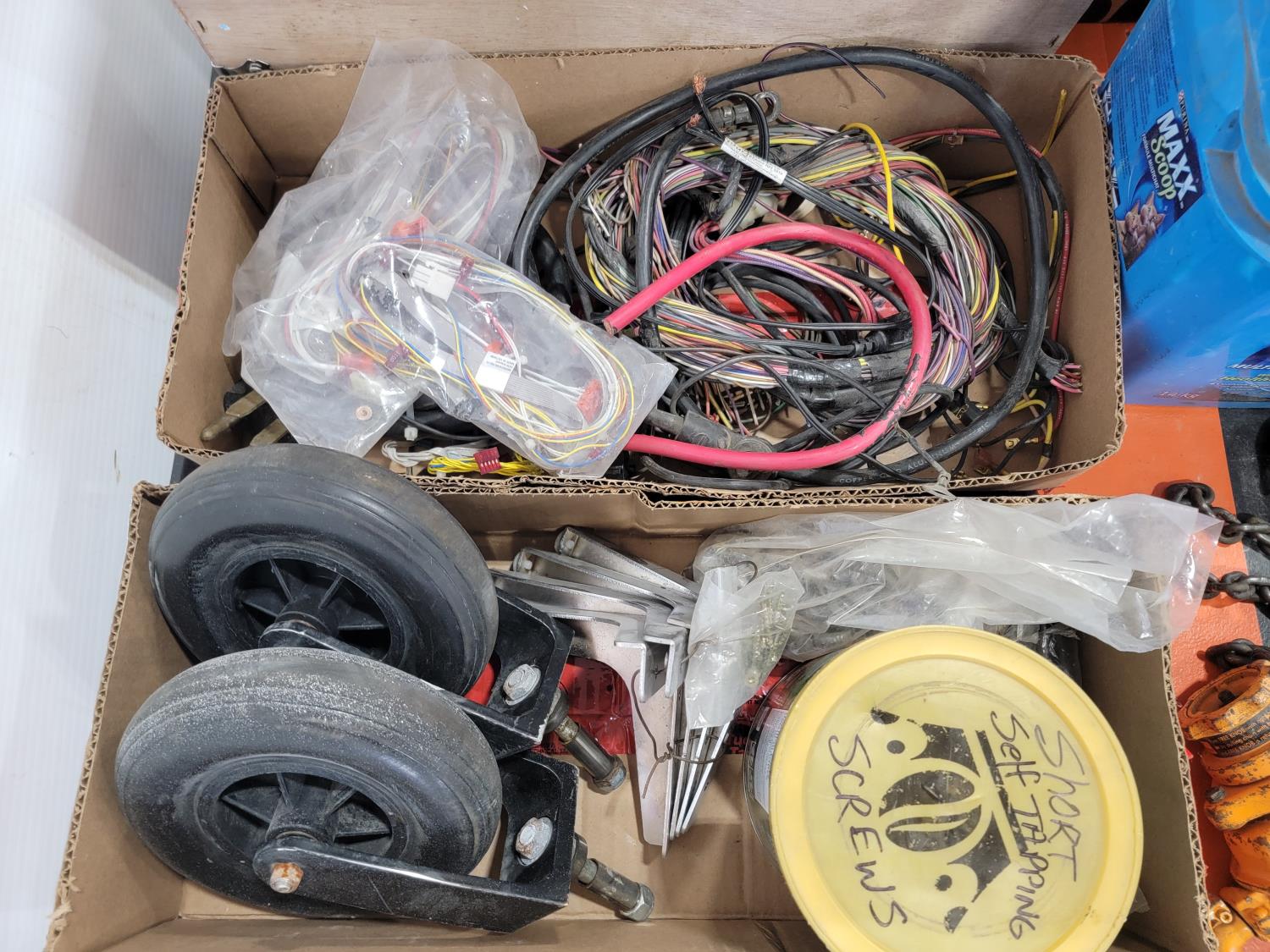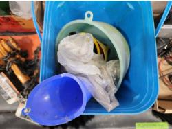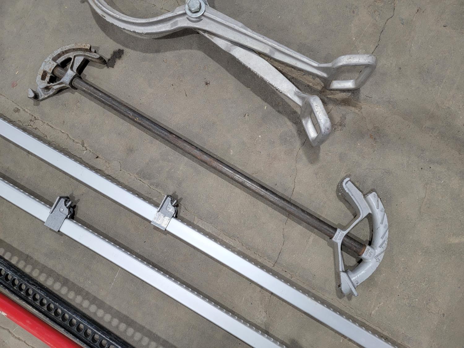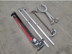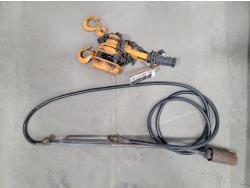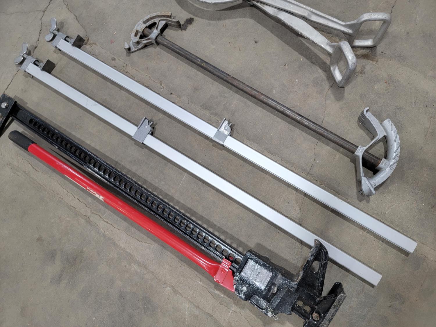 Jack-all, funnels, saw blades, propane torch, chain hoist