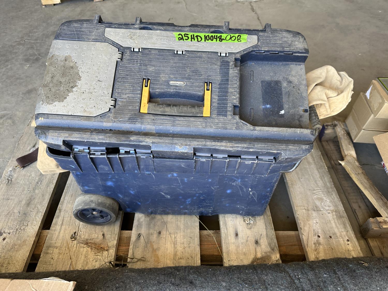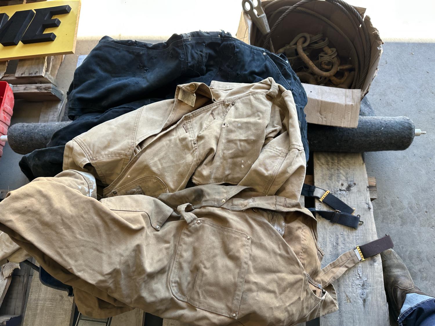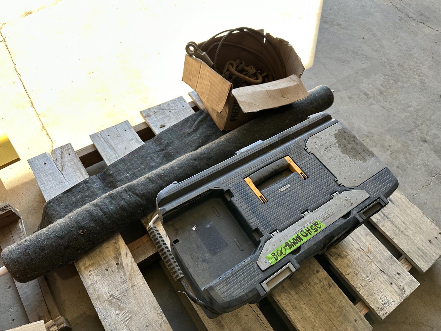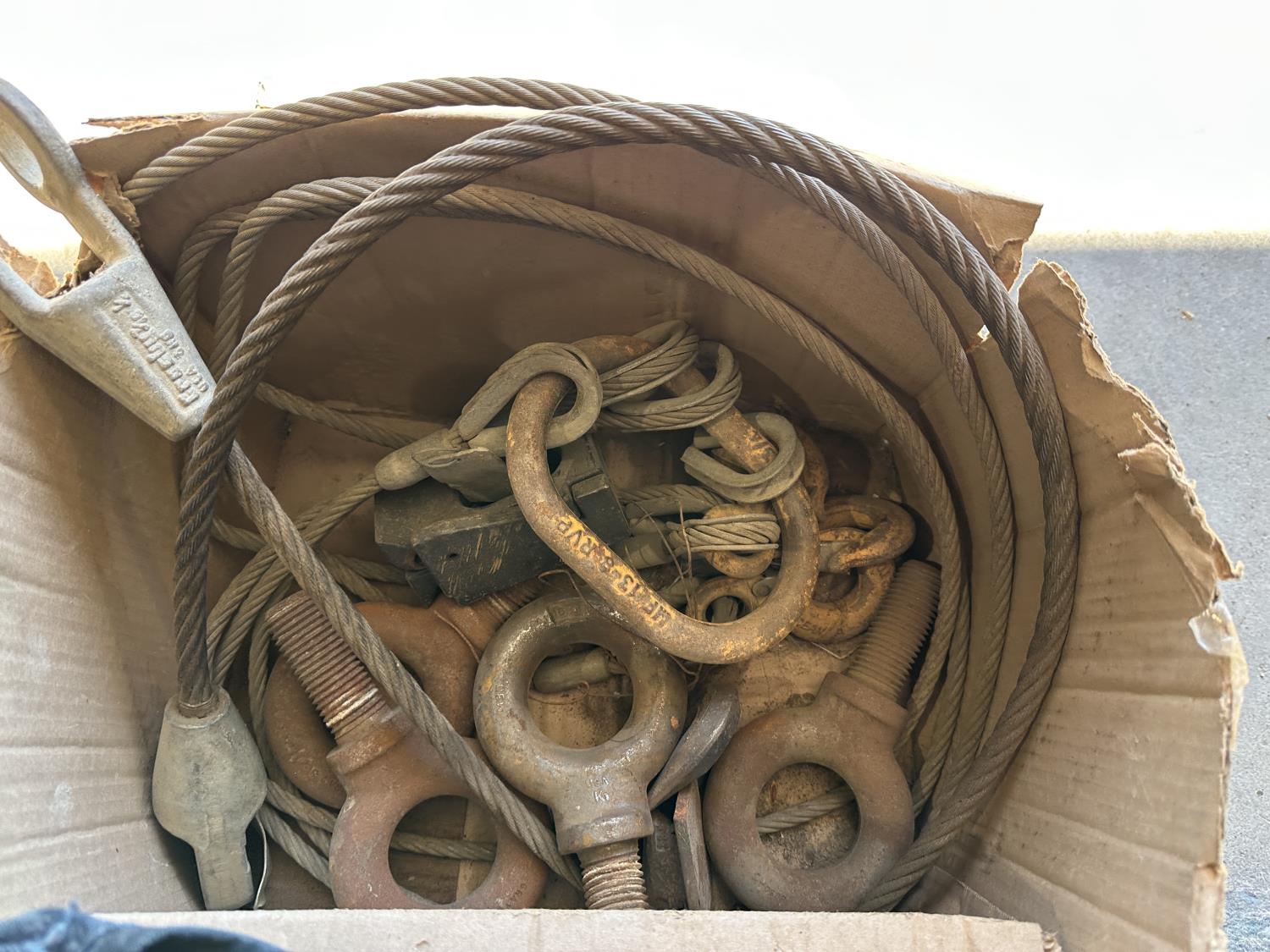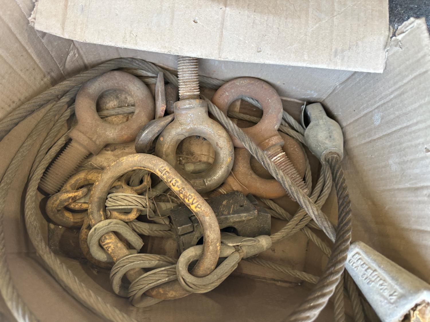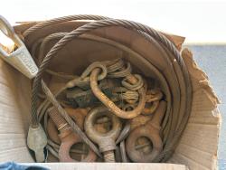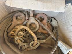 Metal cables, eye bolts, Mastercraft tool box with bibs