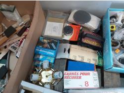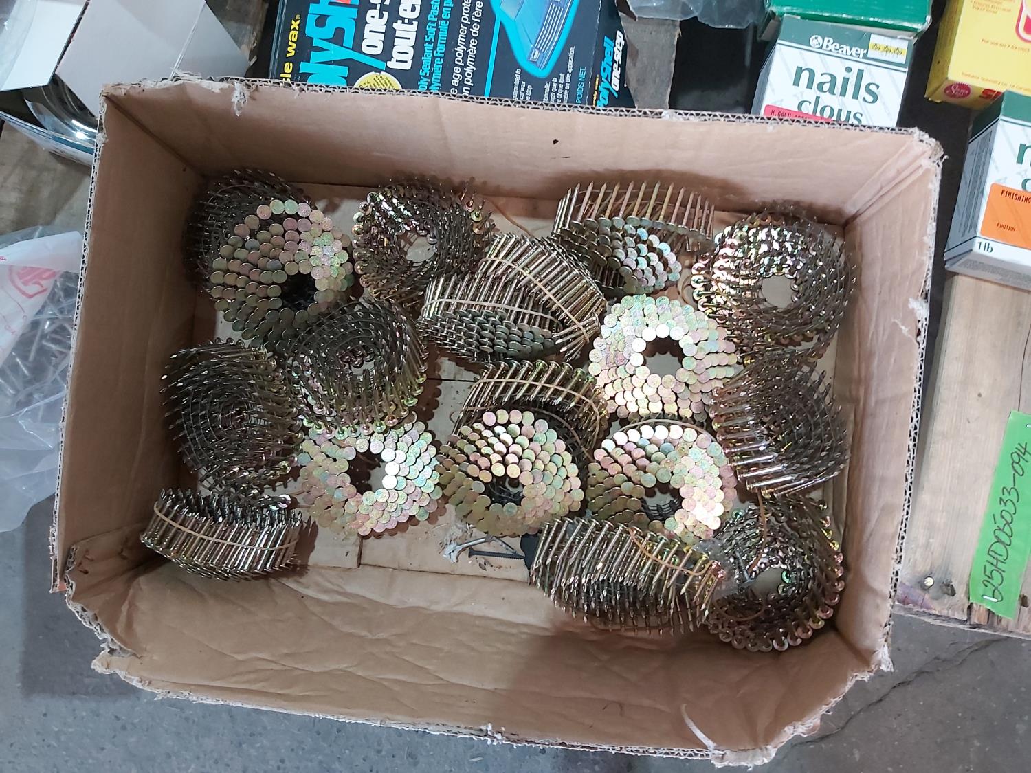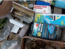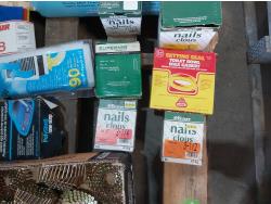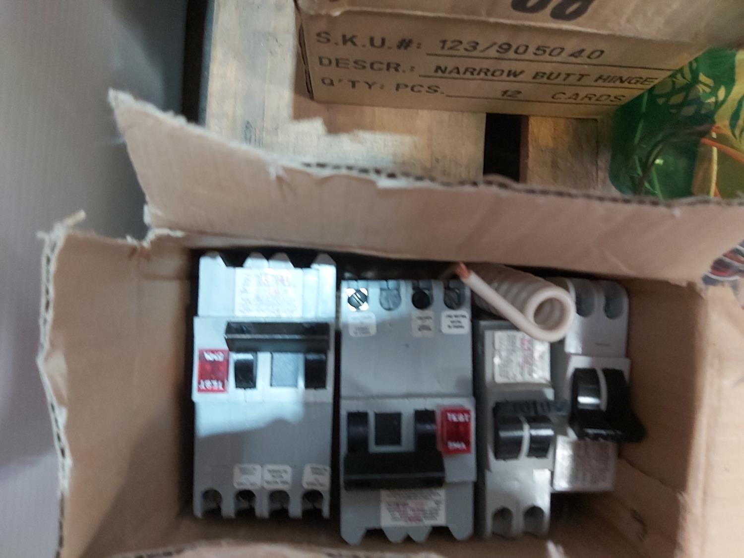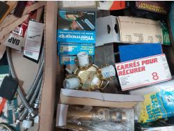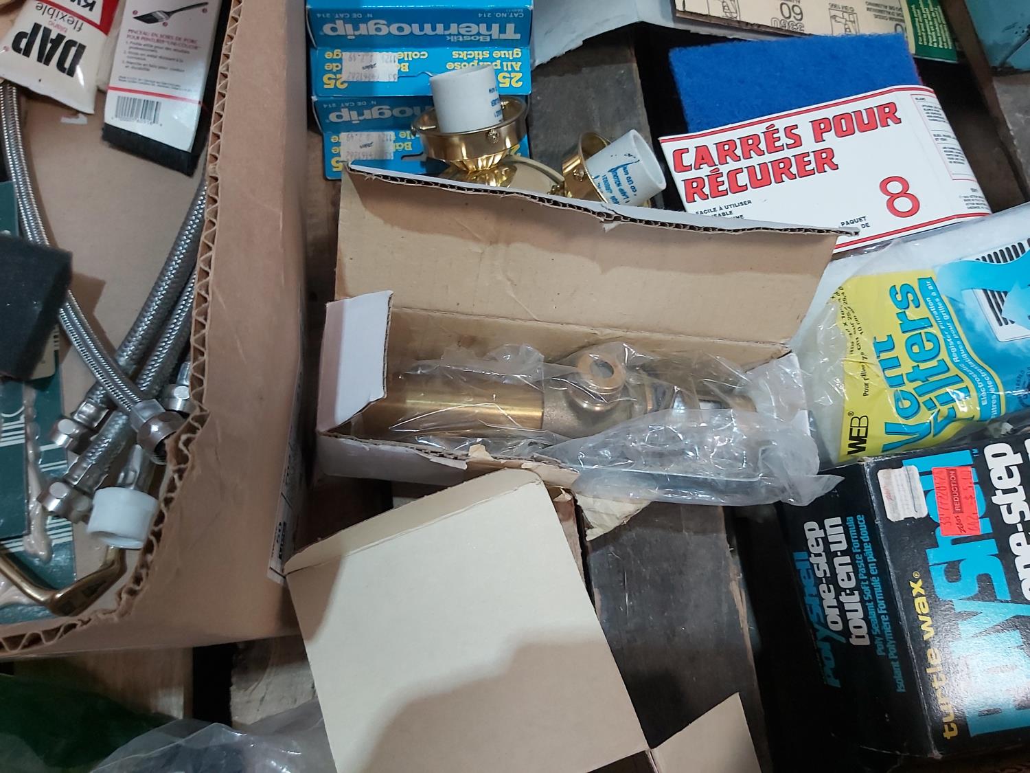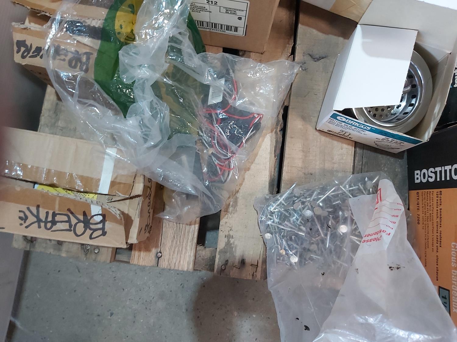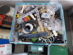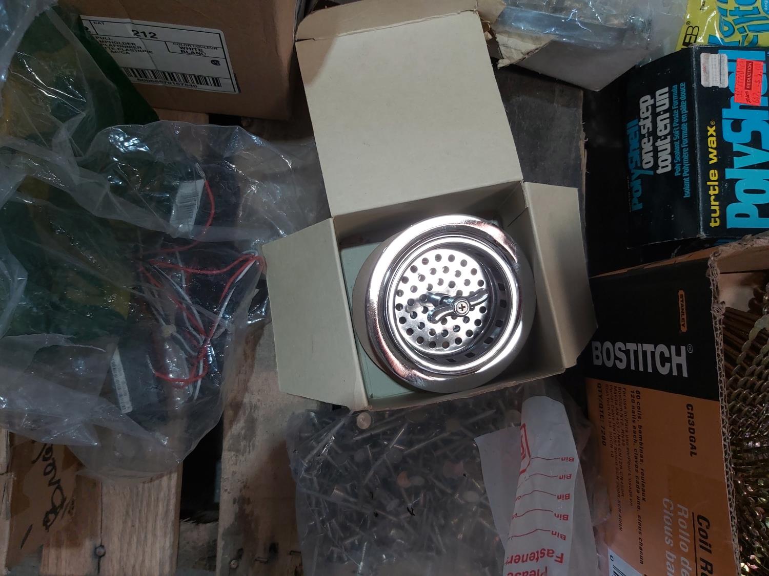 Nails, electrical breakers switches, paint brushes, plug hole basket, light fittings, miscellaneous hardware
