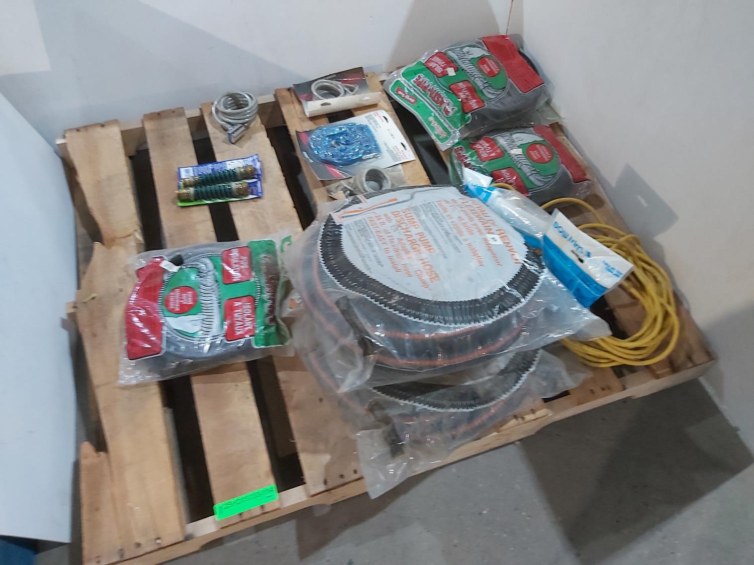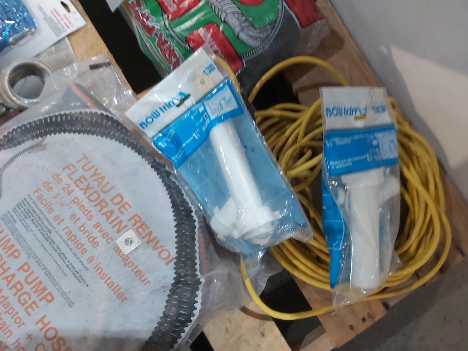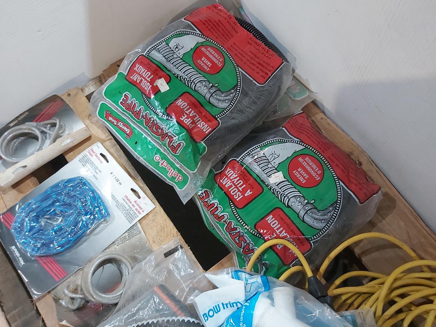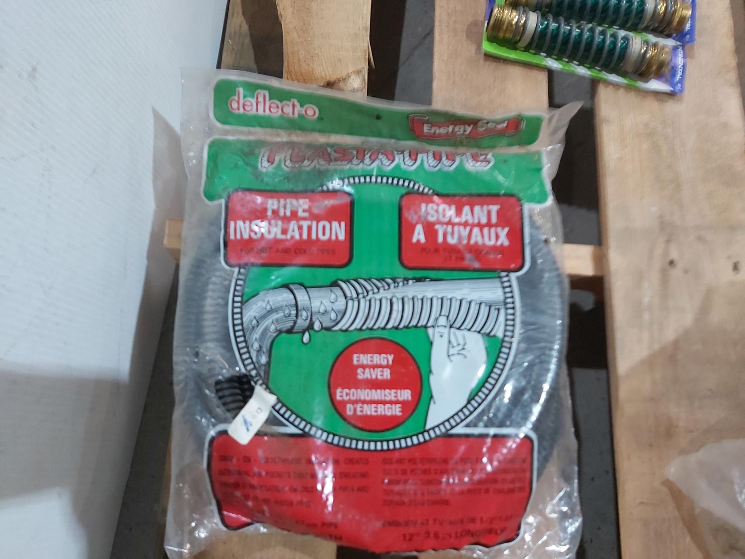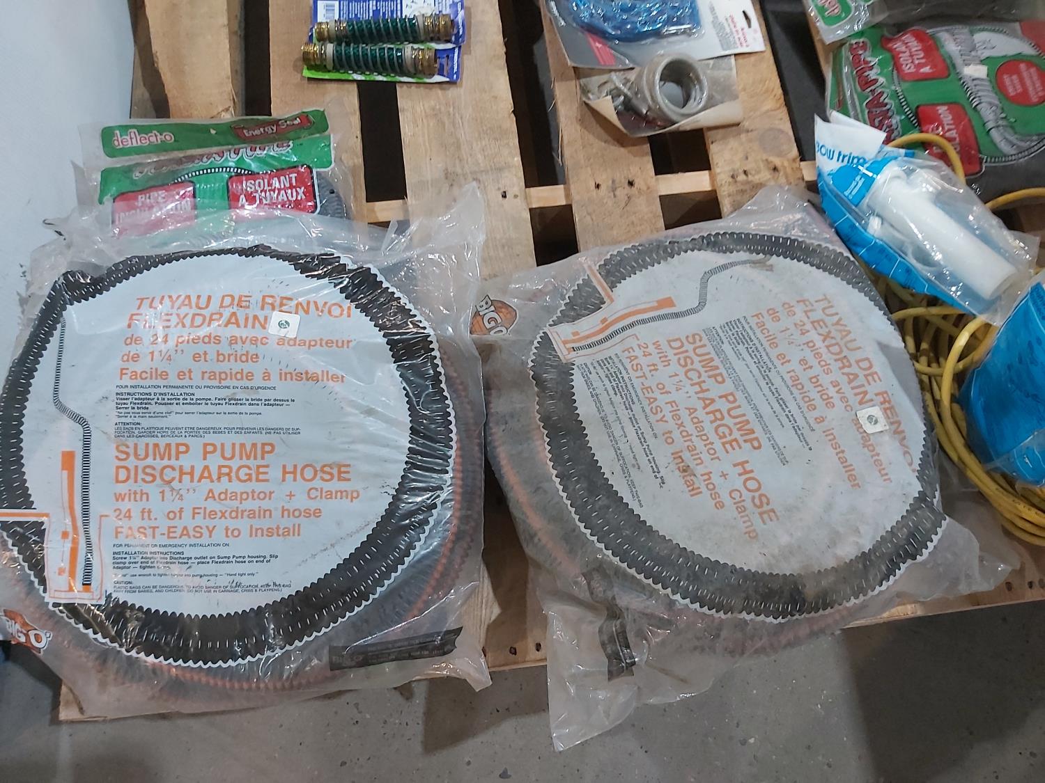 (2) 24 ft sump pump discharge hoses, (4) 1/2 inch x 12 ft pipe insulation, (2) security wire, security chain, extension cord