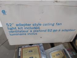 52 inch ceiling fan, light switch trim, (8) pairs of shelf brackets, miscellaneous hardware