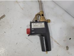 Qty of booster cable clamps, medium rain suit, booster cables, 3/8 inch propane hose, 25 ft x 3/8 inch air hose, propane torch, Can-Lite ignition torch