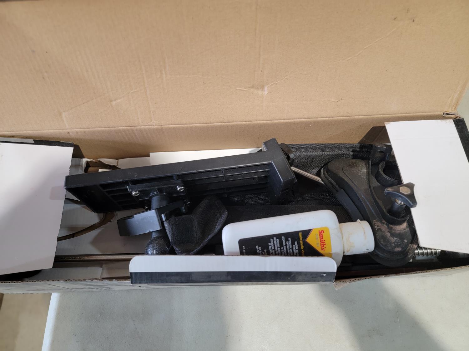 RV leveling blocks, knife sharpener, 20 inch x 13 inch x 32 inch suitcase