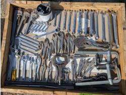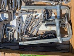 Set of combination wrenches, 18 inch, 14 inch and 12 inch pipe wrenches, 15 inch, 12 inch and (2) 10 inch crescent wrenches, (5) C-clamp vise grips, (13) vise grips, (4) chain grips, (2) pin bars, (4) files, (2) 2400 lb Bessy Clamps