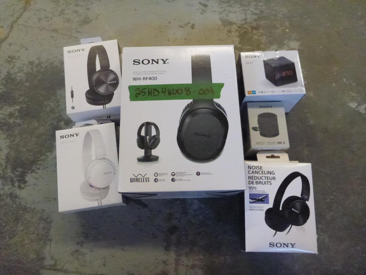 gaming set, (6) wired sets, alarm clock, portable speaker