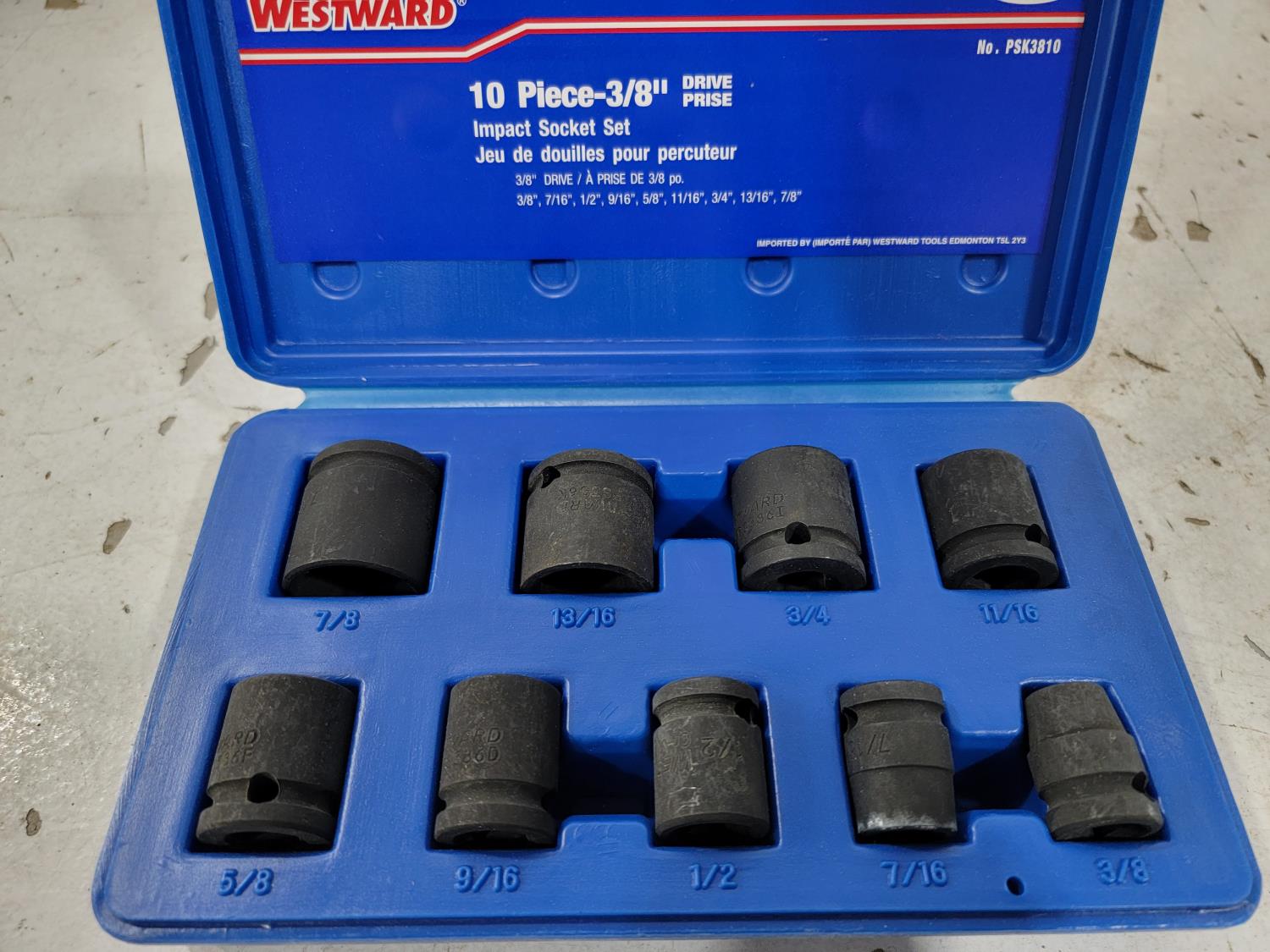 Dremel oscillating tool, Westward impact sockets, 1 piece Mastercraft metric combo wrench set, Mastercraft 2-in-1 air nailer, 300PSI air hose