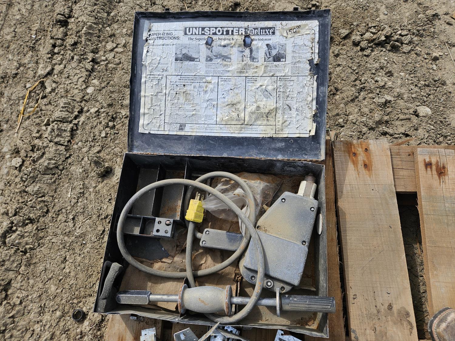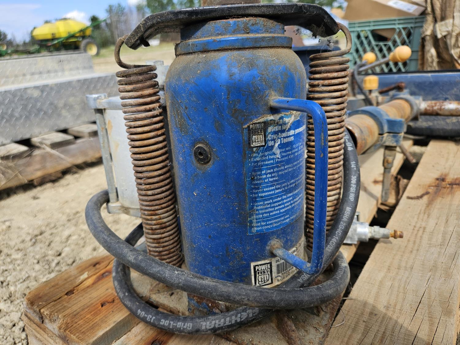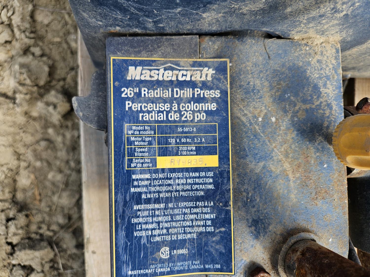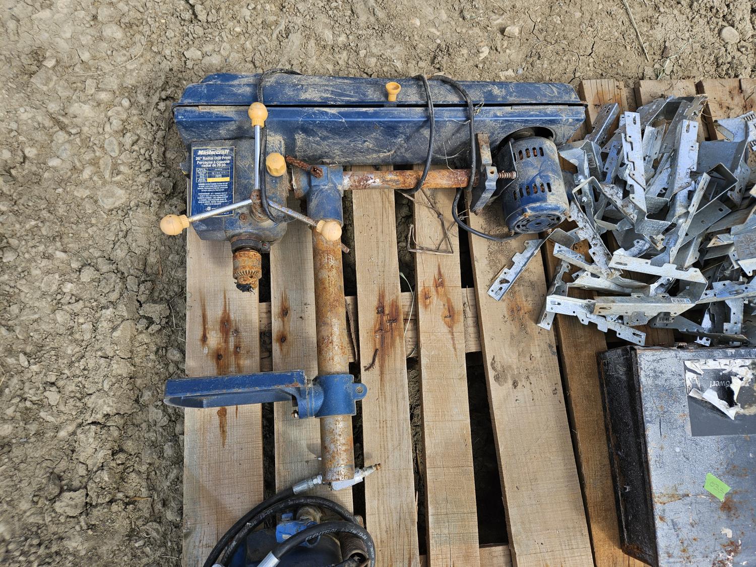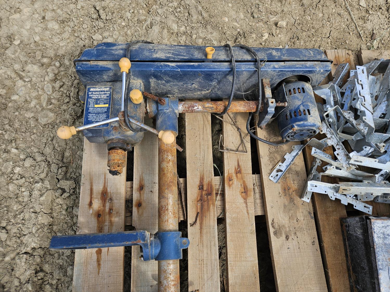 Mastercraft drill press, hydraulic bottle jack, spot welder, brackets