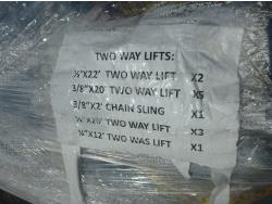 (2) 1/2 inch x 22 ft (5) 3/8 inch x 20 ft 3/8 inch x 2 ft chain sling, (3) 1/2 inch x 20 ft 1/4 inch x 12 ft