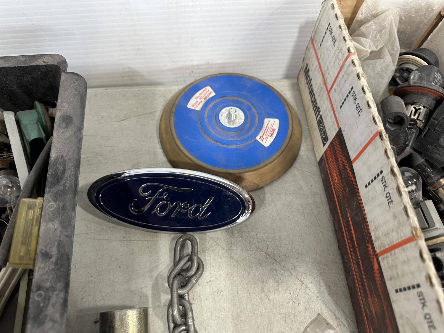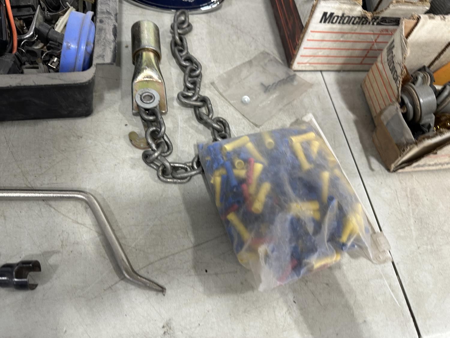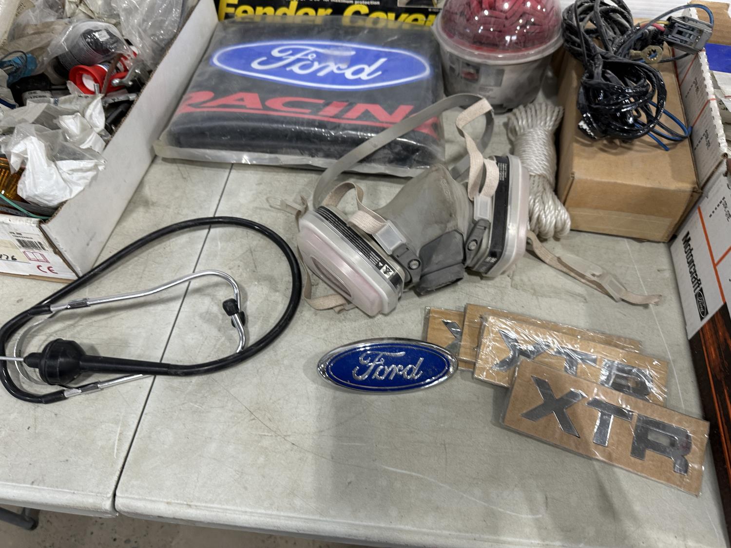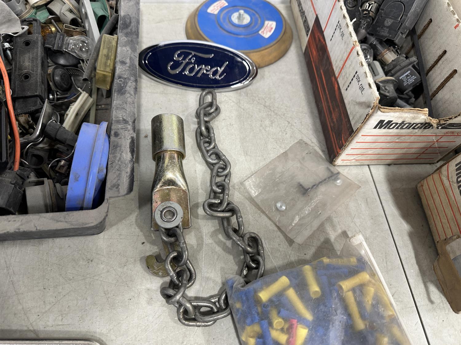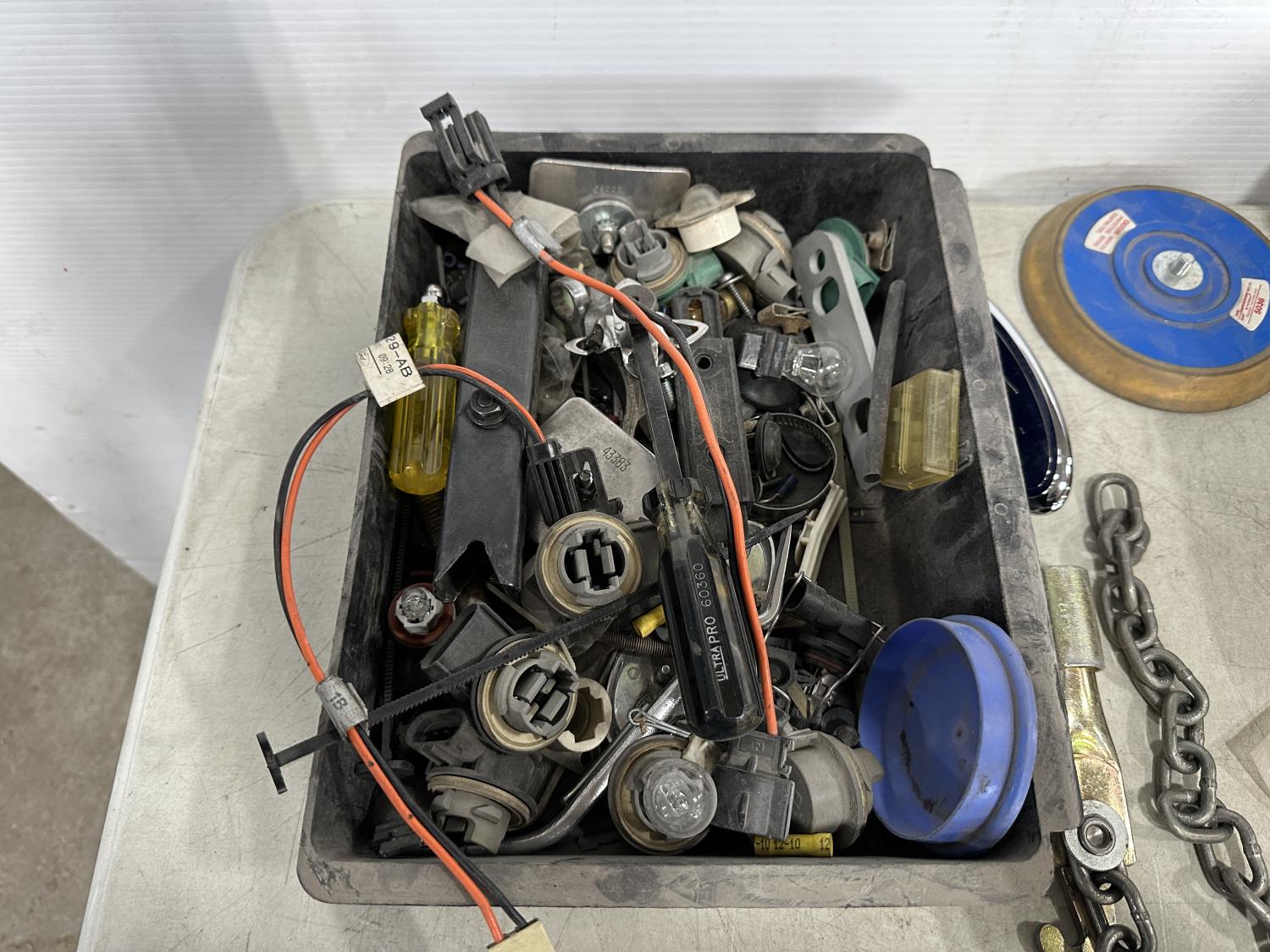 badges, lights bulbs, rivets, rivet gun, clips, fender cover