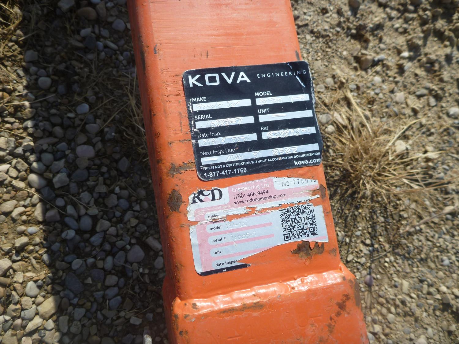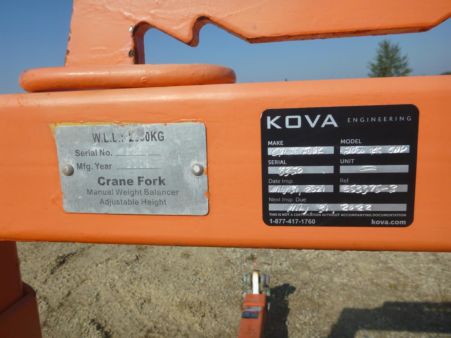 2359 Red Engineering 30 Ton 13-22 Ft Spreader Bar & 2000 kg W. L. L Crane Forks