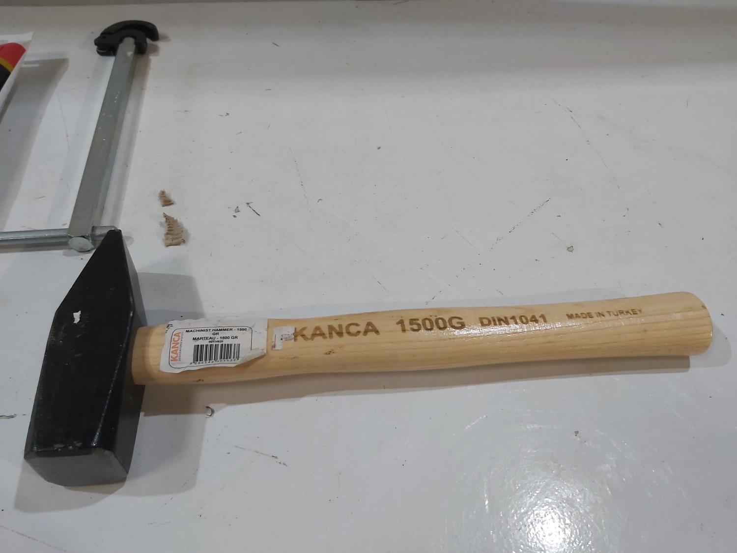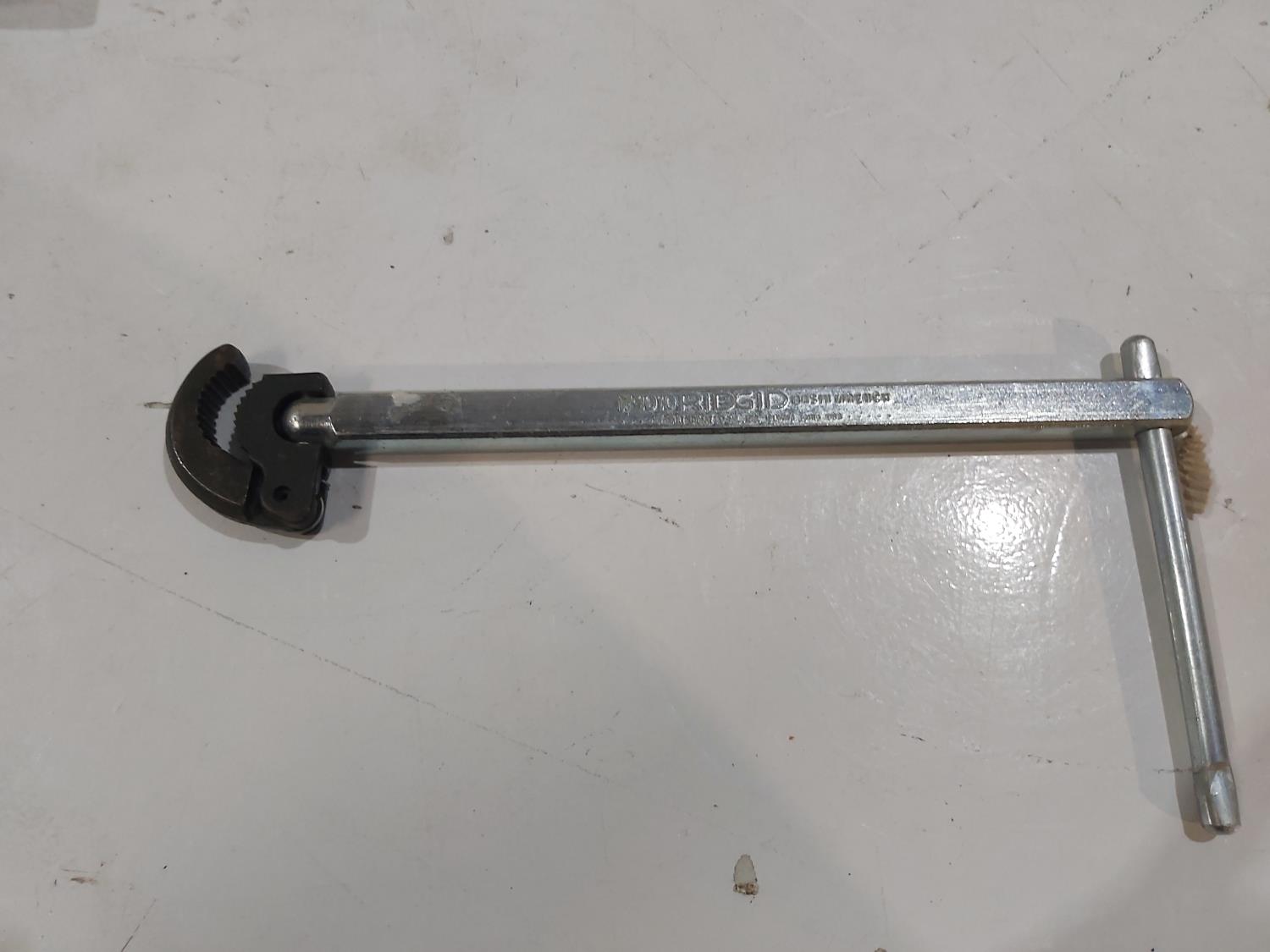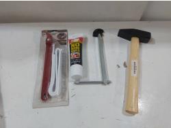 1095 Ridgid Basin Wrench, Kanca 1500G Sledge Hammer, 12 Inch Strap Wrench and Tube of No More Nails (Unused)