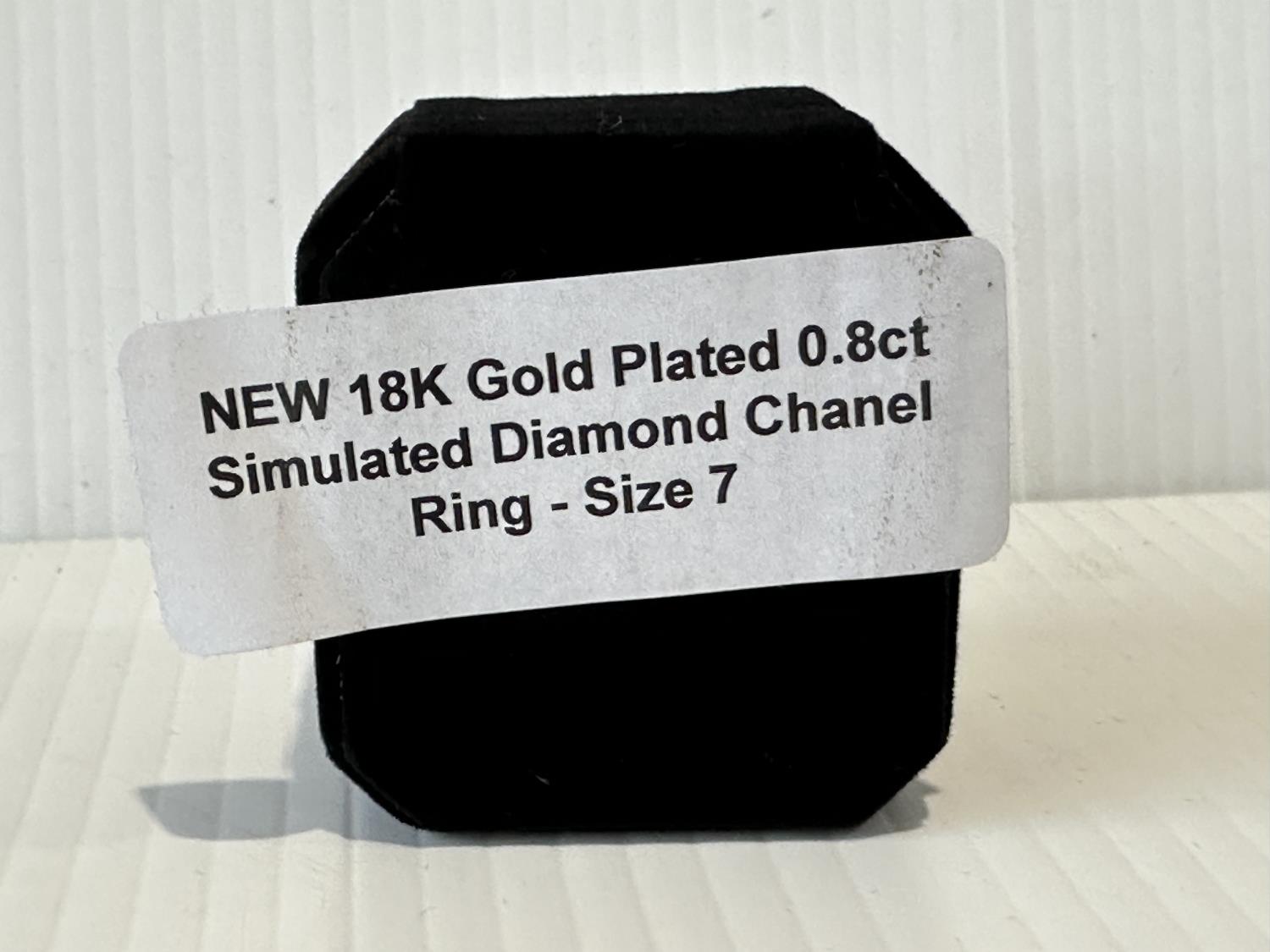 1697 Smartlife 18K Gold Plated 0.8 Ct Simulated Diamond Chanel Ring - Size 7 (Unused)