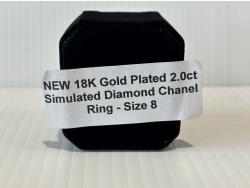 1698 Smartlife 18K Gold Plated 2.0 Ct Simulated Diamond Chanel Ring - Size 8 (Unused)