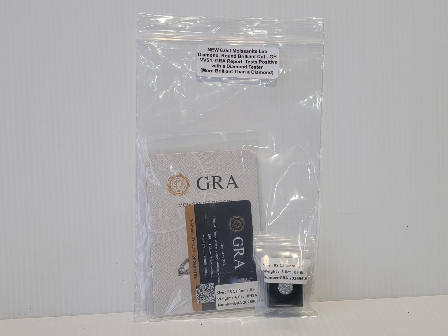 1696 Smartlife 6.0 Ct Round Brilliant Cut Moissanite Lab Diamond (Unused)