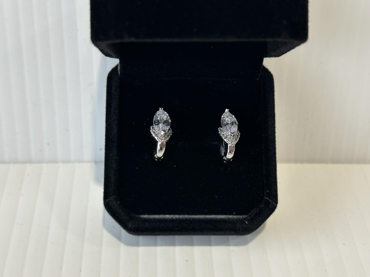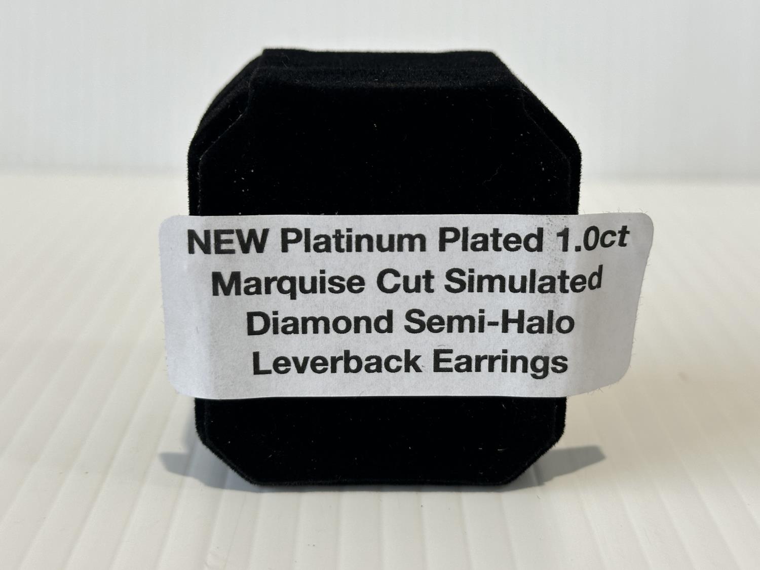 1704 Smartlife platinum Plated 1.0 Ct Marquise Cut Simulated Diamond Semi-Halo Leverback Earrings (Unused)