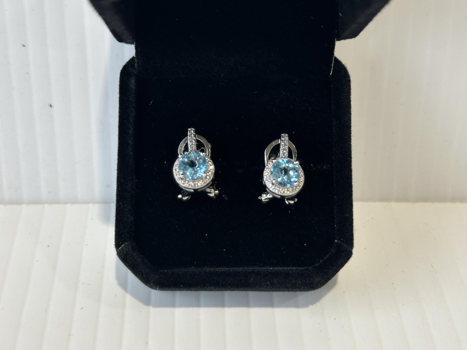 1705 Smartlife Sterling Silver 0.8 Ct Each Natural Swiss Blue Topaz Leverback Earrings (Unused)