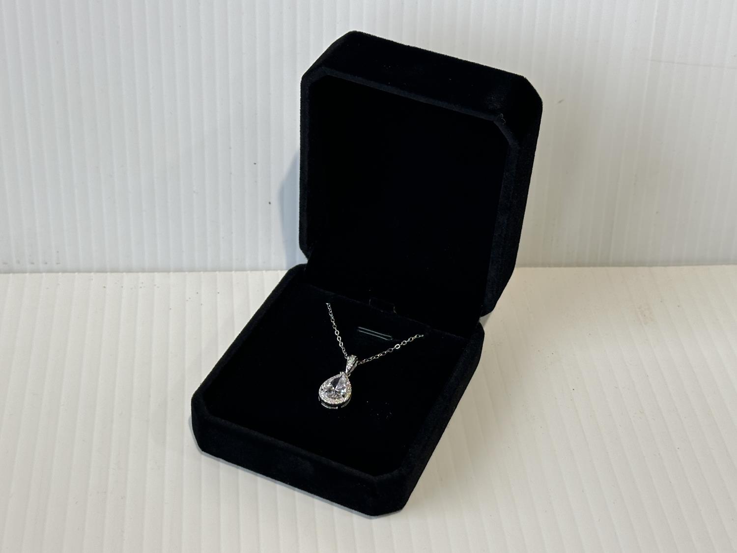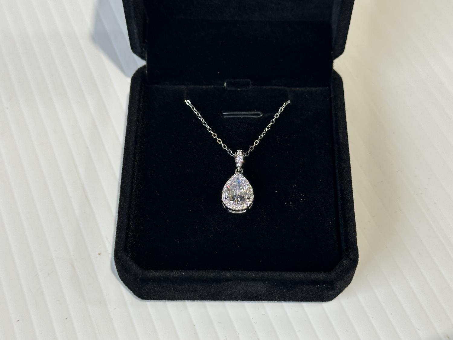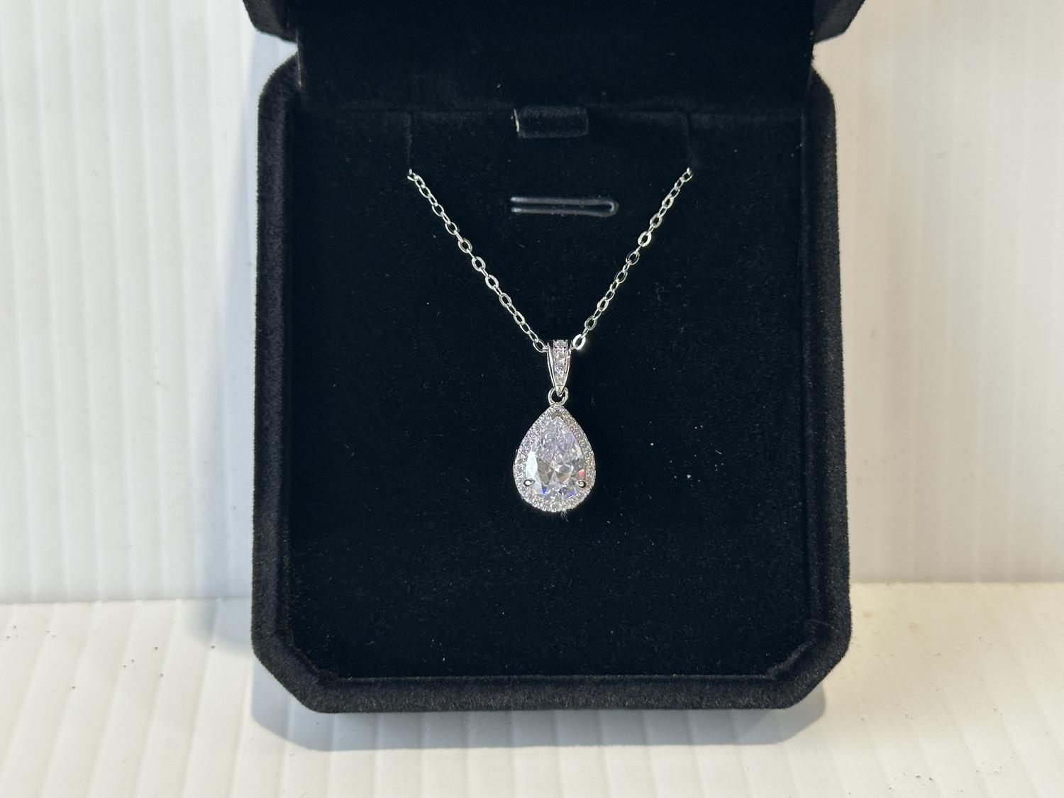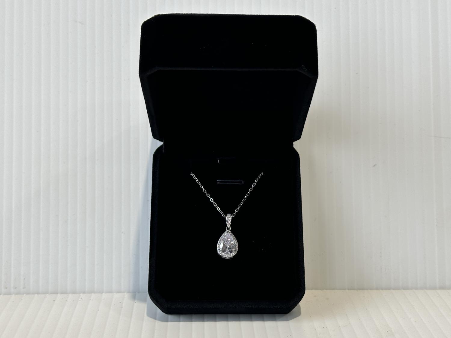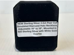 1707 Smartlife Sterling Silver 2.0 Ct Pear Cut Simulated Diamond Halo Necklace (Unused)
