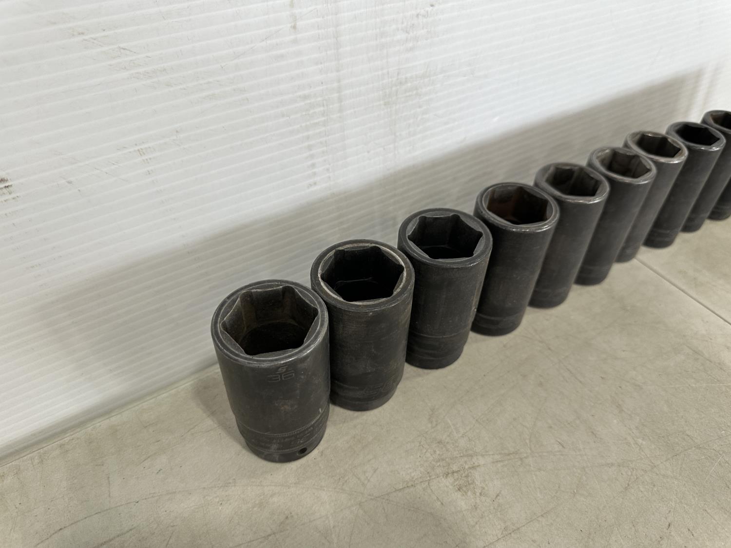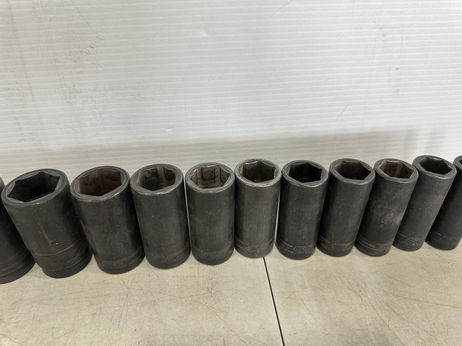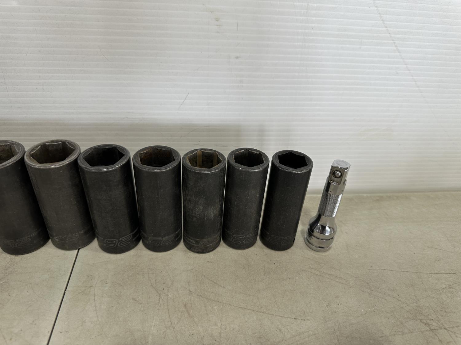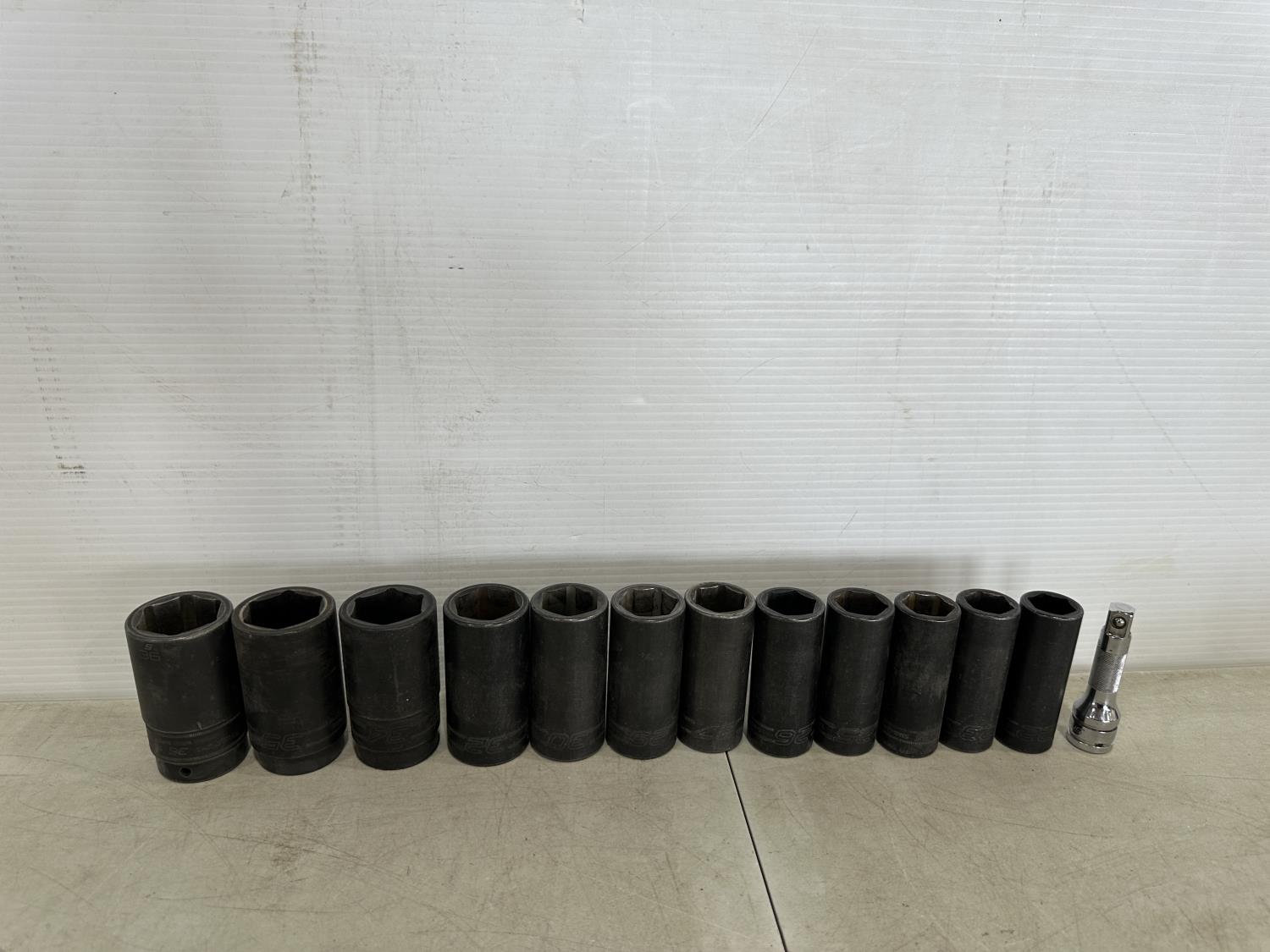 1522 Snap-on 12 Piece 1/2 Inch Drive Impact Deep Sockets and 3 Inch Chrome Extension