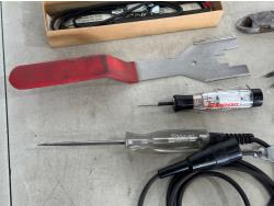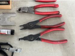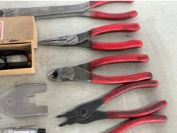 Needle nose pliers, side cutters, snap ring pliers, electrical tester and etching pencil