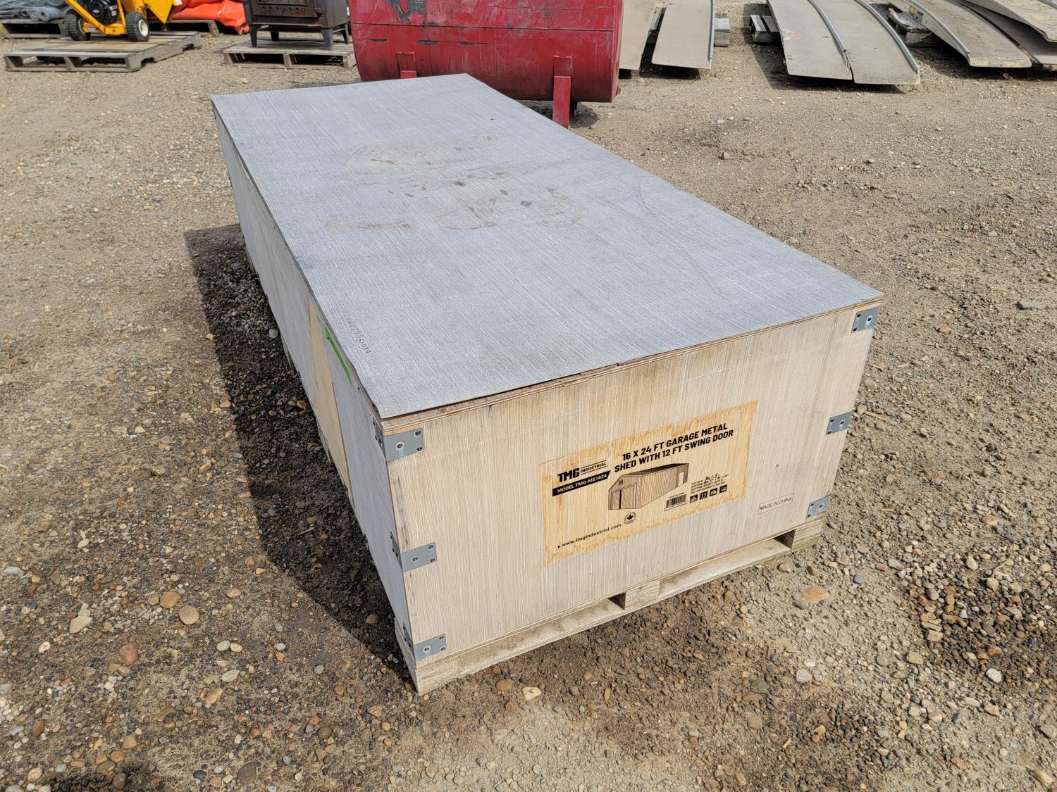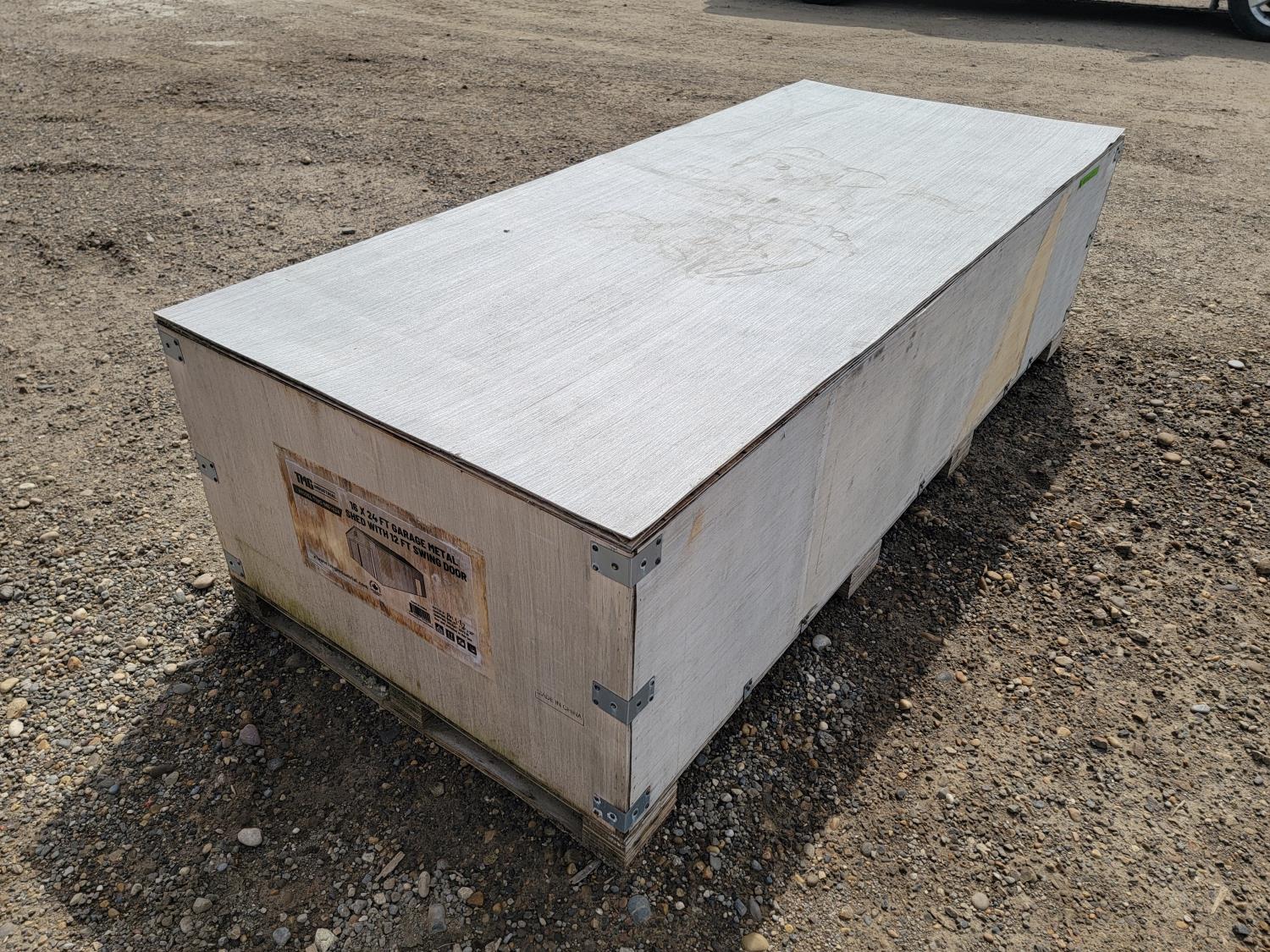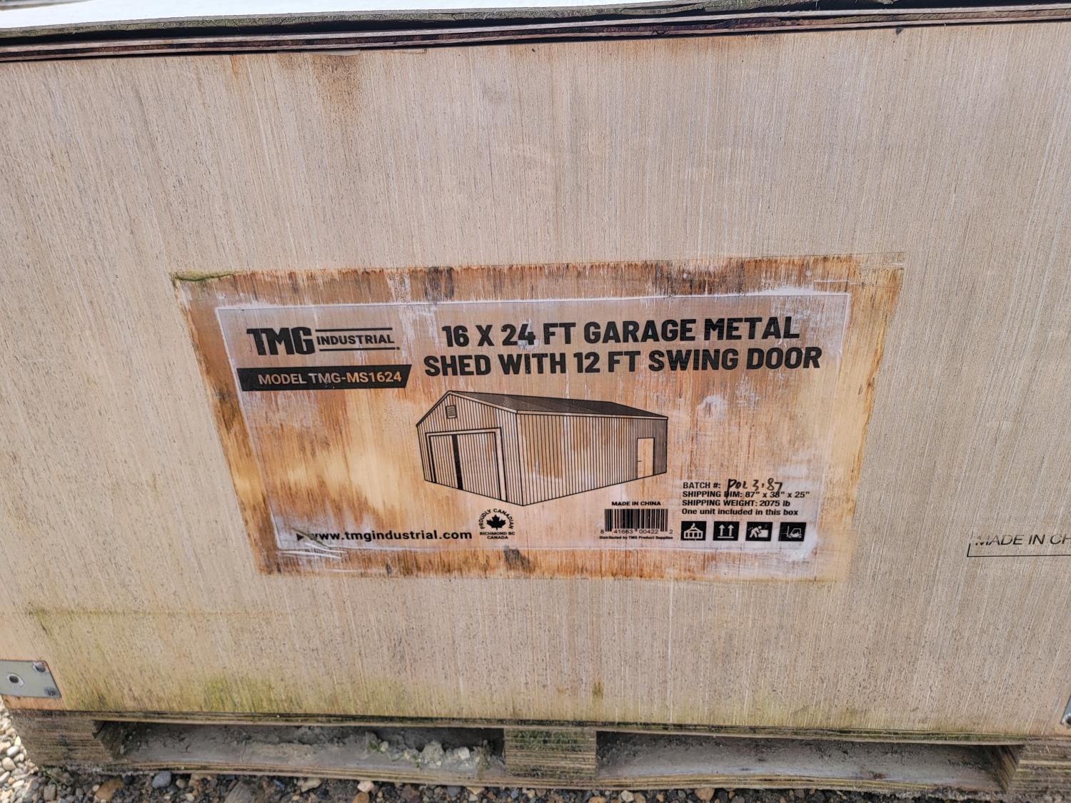 1821 TMG-MS1624 16 Ft X 24 Ft Garage Metal Shed with 12 Ft Swing Door (Unused)