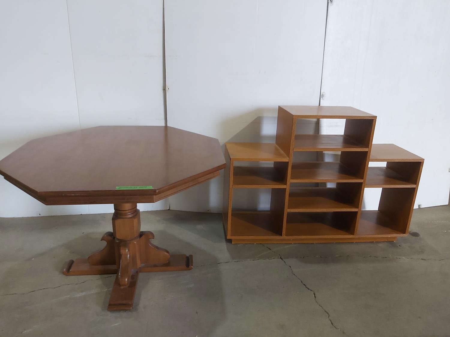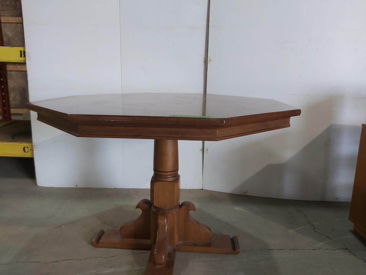 Table 40 inch x 40 inch x 28 inch h, stand 47 inch x 14 inch d x 34 inch h