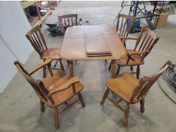 1568 Wooden Dining Table with (2) Leaves and (6) Chairs