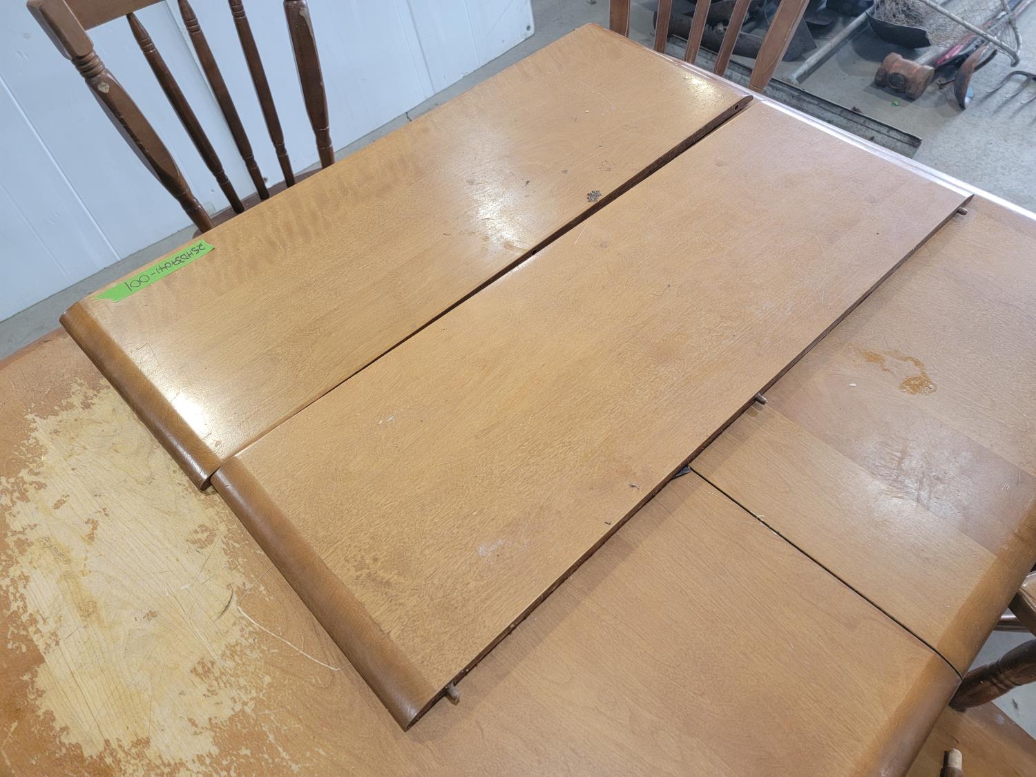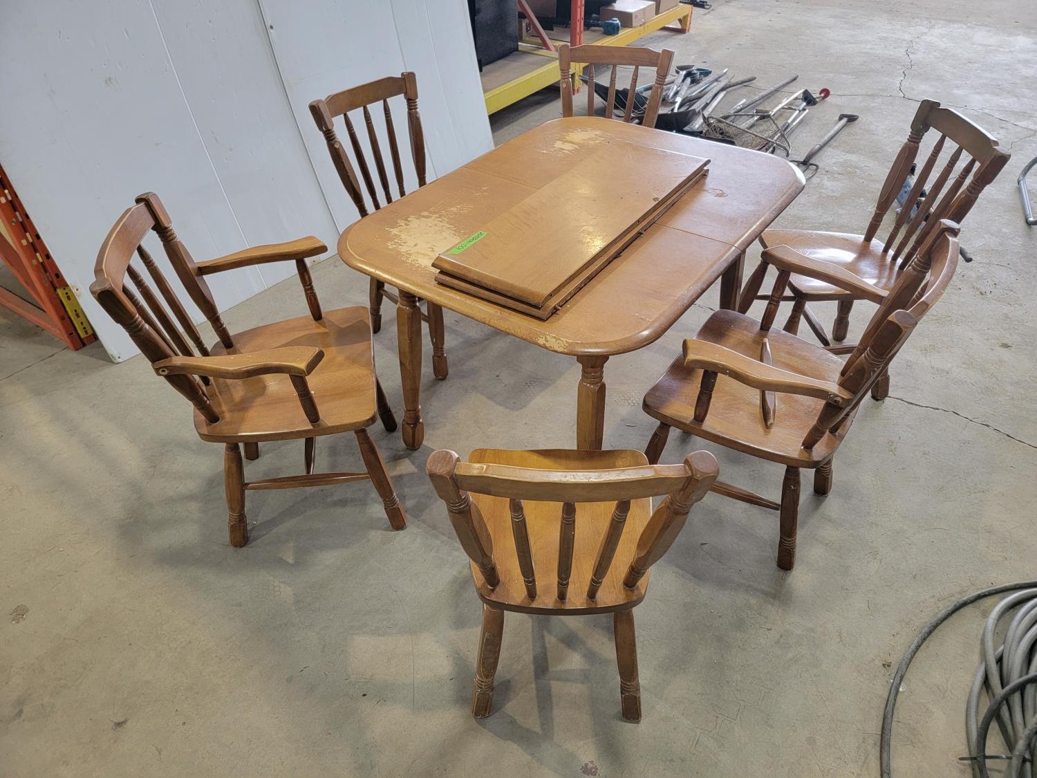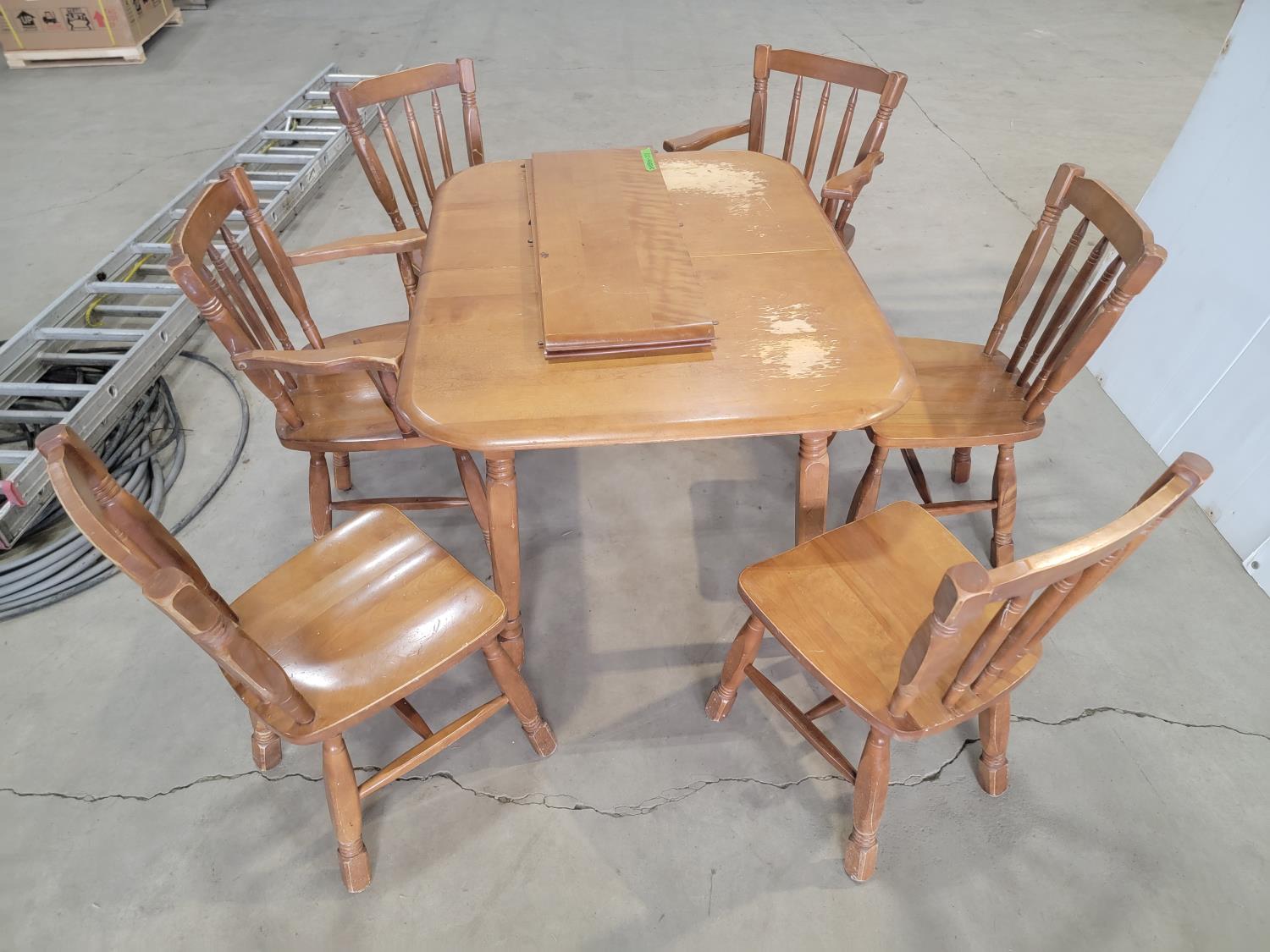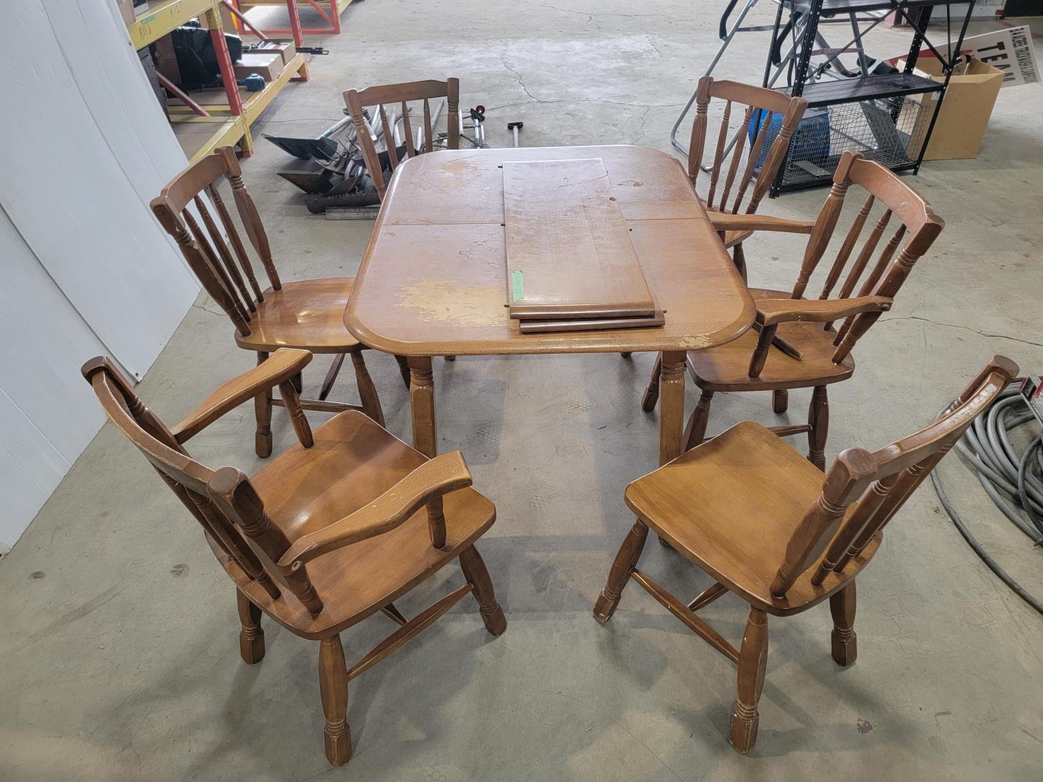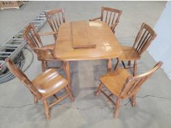 1568 Wooden Dining Table with (2) Leaves and (6) Chairs
