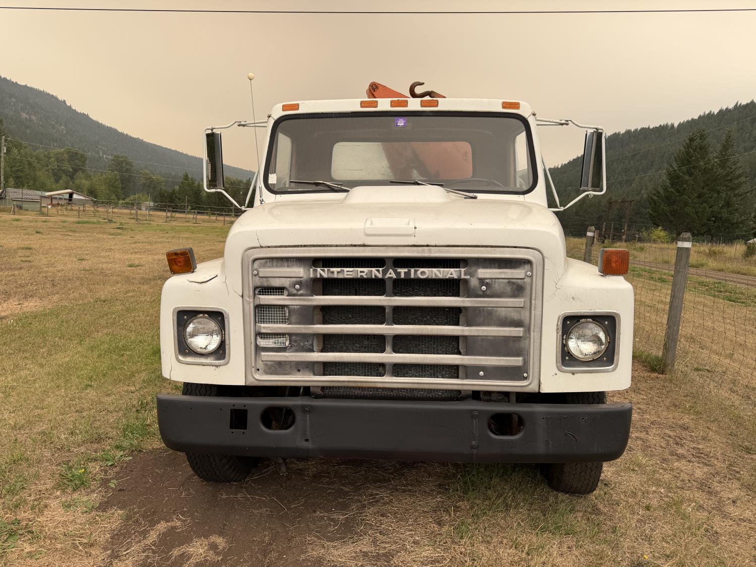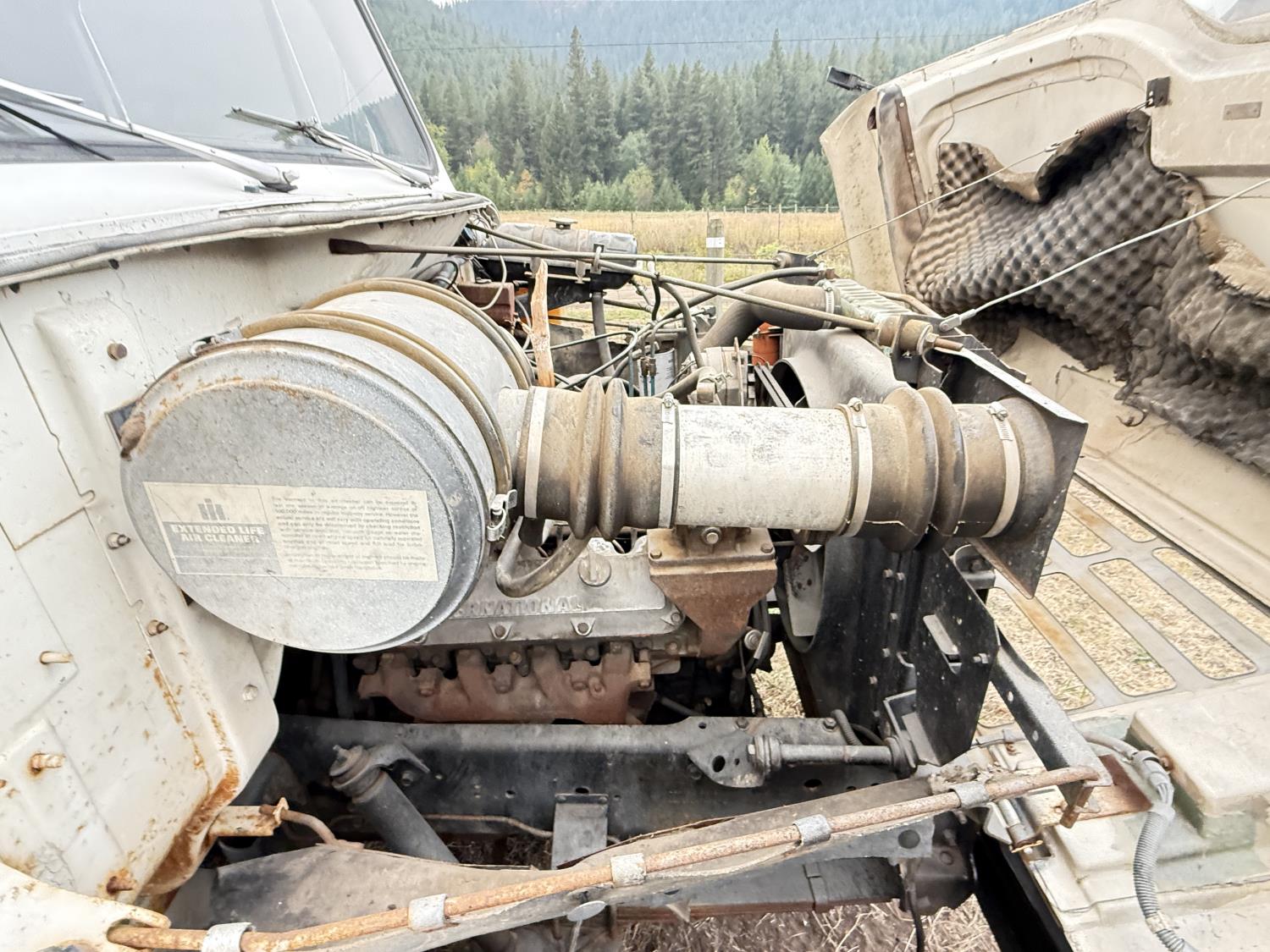 International V8 diesel engine, 5 speed manual transmission, 3 section 13 ft knuckle front mount crane, outriggers, spring suspension, 188 inch WB, 2 spd differential, Many spare parts included, 9.00/20 front tires, 8.25/20 rear tires