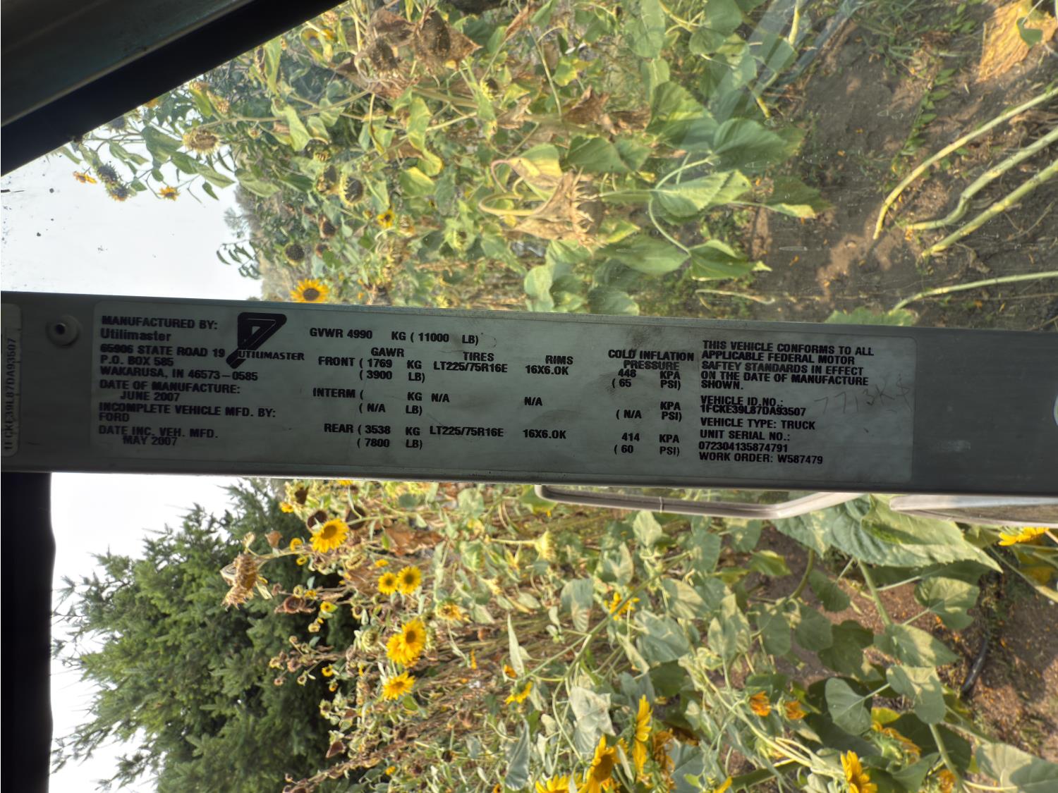 Ford 5.4 L V8 gas engine, 4 speed automatic transmission, P/L, spring suspension, 3,900 lb front axle, 7,800 lb rear axles, 225/75R16 tires
