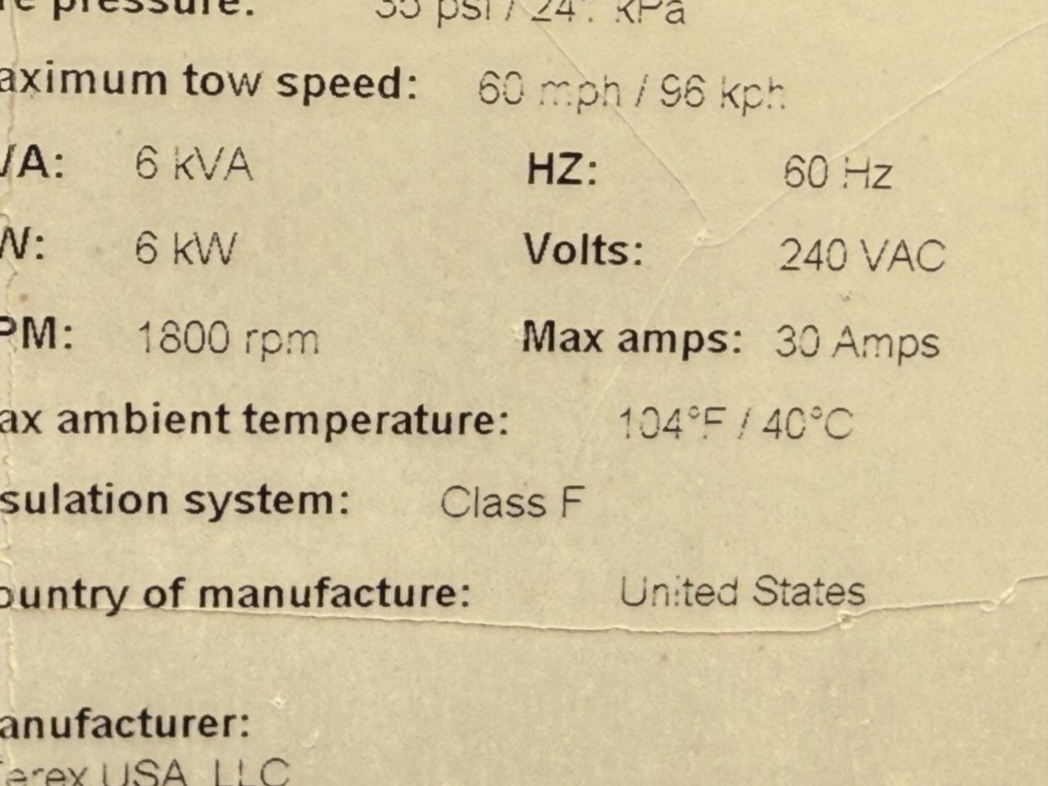 6 KW, 240v, 30amp, Pintle Hitch, 3 cylinder. diesel engine, ST175/80D13 tires
