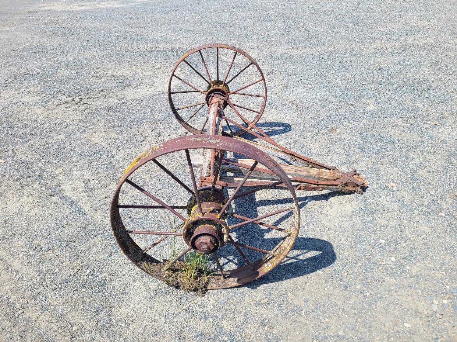 595 Antique Wagon Axle and Wheels