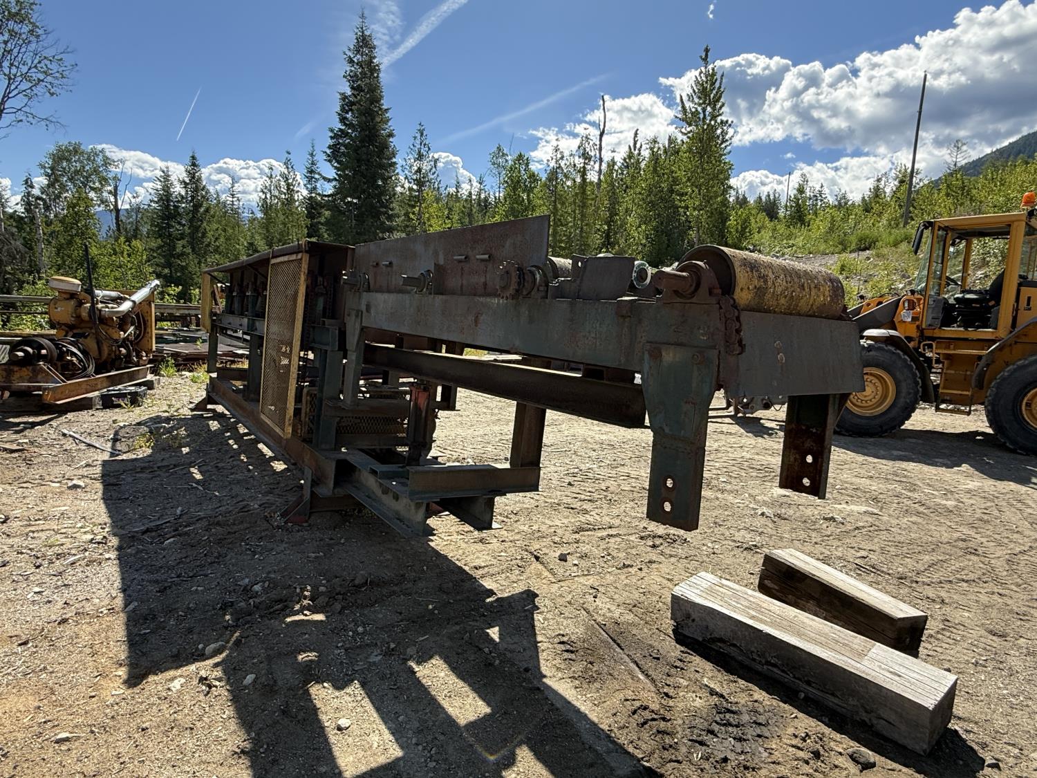 1998 Custom built 60 ft bandsaw mill, 40HP Kohler sawmill plant, 40in bandsaw wheels, hydraulic auxiliary unit to run deck hydraulics, feed deck, trim saw