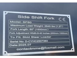 396 GIYI GY-SF60 60 Inch Side Shift Pallet Forks - Skid Steer Attachment (Unused)